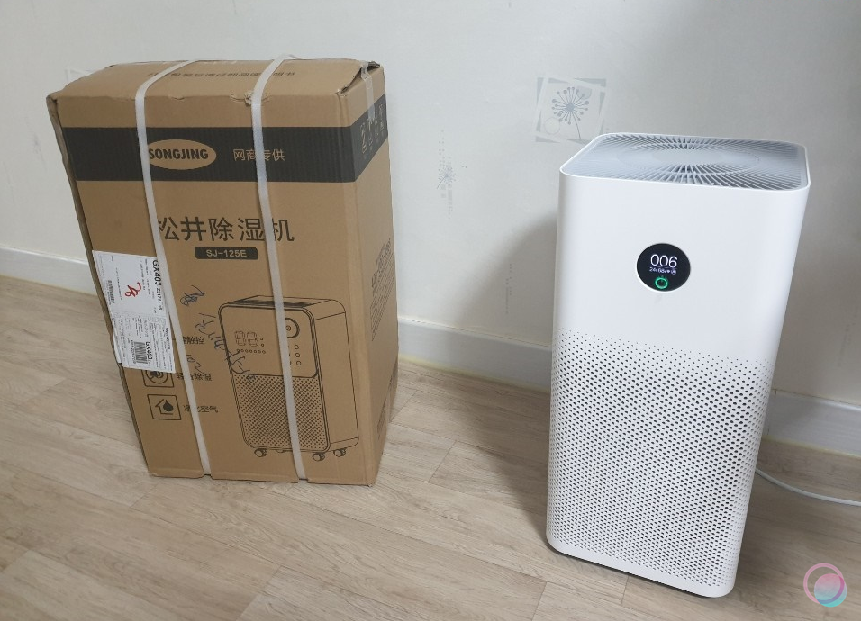 그리고 아내가 식물을 좋아하고 대부분의 식물이 집에서 수경재배를 하고 있으며, 심지어 빨래마저도 실내에서 건조하기 더더욱 습도는 그야말로 최악.. 여름철엔 거의 80%를 유지중이고 장마기간에는 더더욱 심해져서 최고 95%까지 찍은 적도 있었으니깐요... 그리하여! 난생 처음 제습기라는 것을 구매해봤는데요. 제가 구매한 모델은 샤오미 송징 제습기(SJ-125E)라는 제품입니다.
