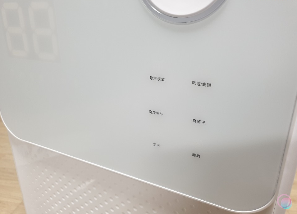 샤오미 송징 제습기는 터치로 조작합니다. 직구 제품이라 그런지 버튼이 전부 중국어로 되어있는데 몇 번 작동해보면 그렇게 어렵지는 않더라구요. 전원 버튼을 제외하고 각 버튼의 기능은 다음과 같으니 참고하시길~