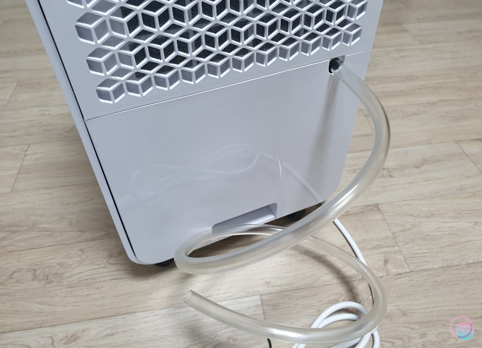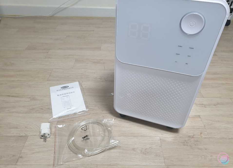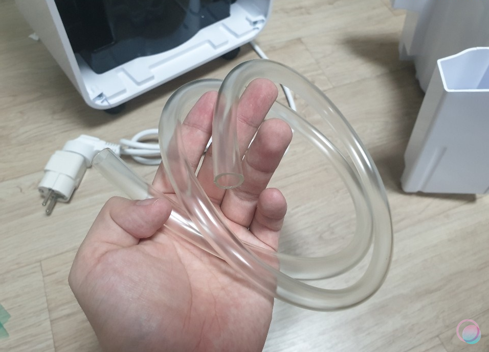그리고 1M 길이의 호스도 함께 동봉되어 있습니다. 샤오미 송징 제습기는 뒷면에 물통이 있어서 물통이 채워질때 까지는 계속해서 사용이 가능하지만 물통이 가득차게 되면 제습기가 작동을 멈추게 됩니다. 그렇기에 제습기를 계속해서 가동하고 싶으신 분들은 호스를 연결하여 반대쪽 호스를 실외로 빼놓게 되면 물통 걱정 없이 24시간 풀가동을 할 수 있습니다.