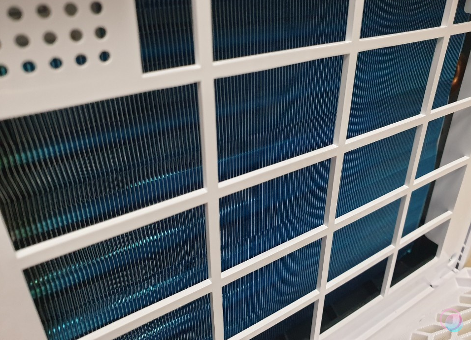 필터 안쪽으로는 샤오미 송징 제습기의 라디에이터가 보입니다. 상세페이지에서는 특허받은 제습기 라디에이터를 적용하여 라디에이터와 습한 공기의 접촉 면적을 크게 늘려 공기 중의 수분이 라디에이터에 응집되어 빠르고 효율적인 제습을 할 수 있다고 설명되어 있네요.