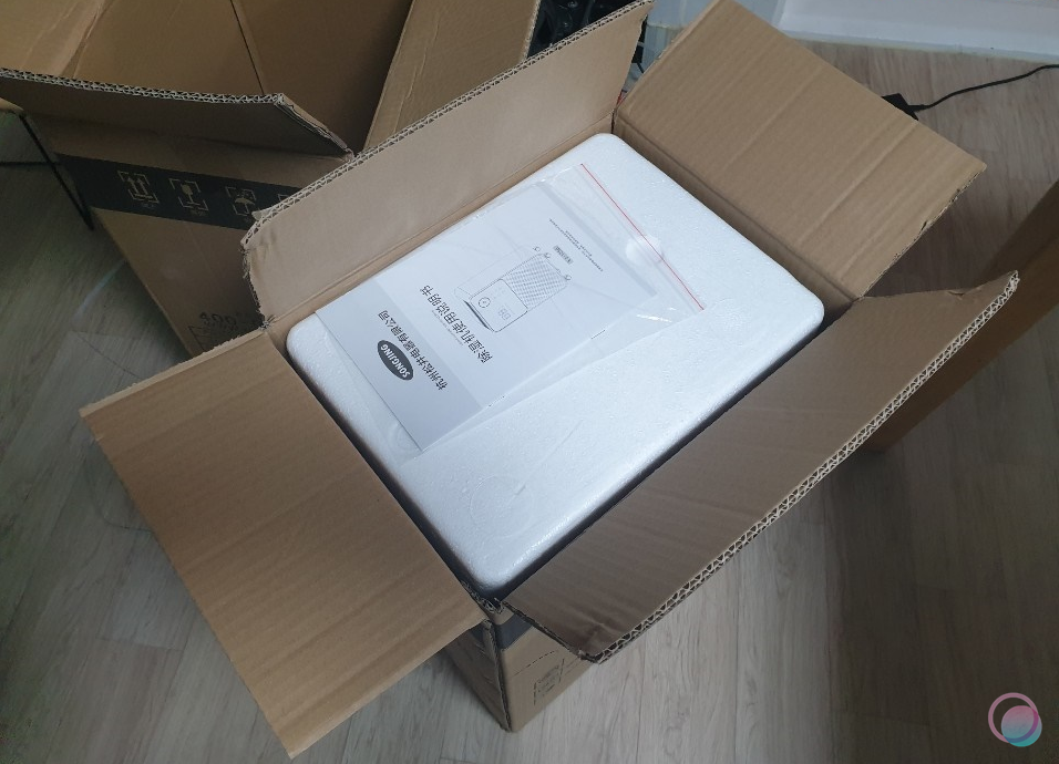 박스는 꼼꼼하게 이중포장 되어있는데요. 박스가 크고 단단하기 때문에 버리지 않고 집안 물건을 정리할때 사용하는걸로! 그리고 박스를 오픈하면 스티로폼이 제품의 상단과 하단을 꼼꼼하게 감싸고 있어서 파손 염려는 하지 않으셔도 될 것 같더라구요.