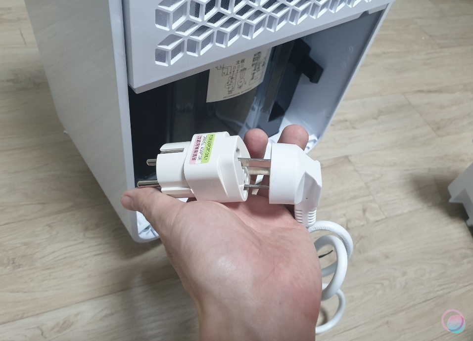 샤오미 송징 제습기의 플러그 모양입니다. 생전 처음보는 모양이라 너무나도 신기했는데요. 구성품에 동봉되어 있는 플러그 어댑터를 이용해서 220v로 변환해주시면 됩니다.