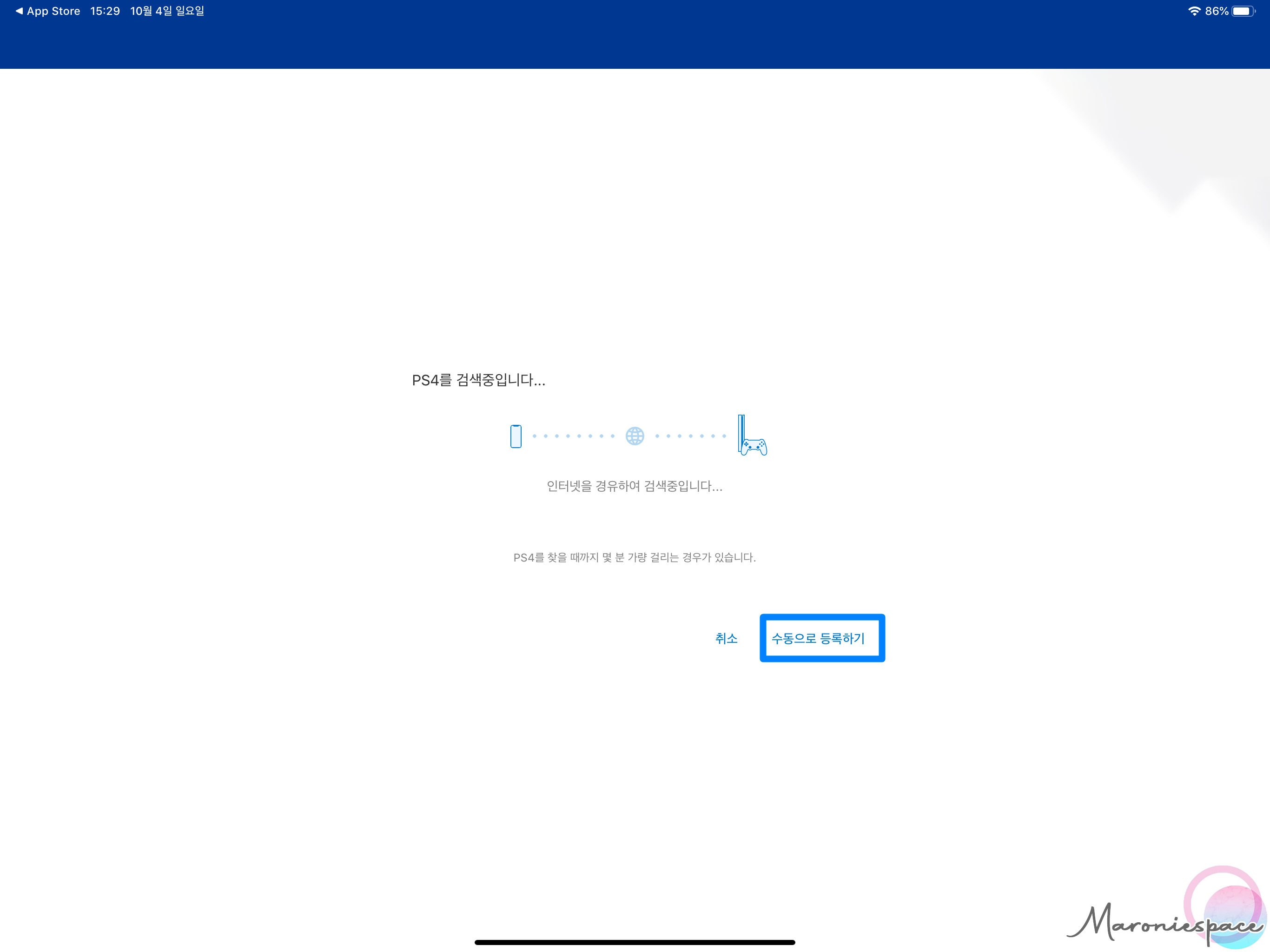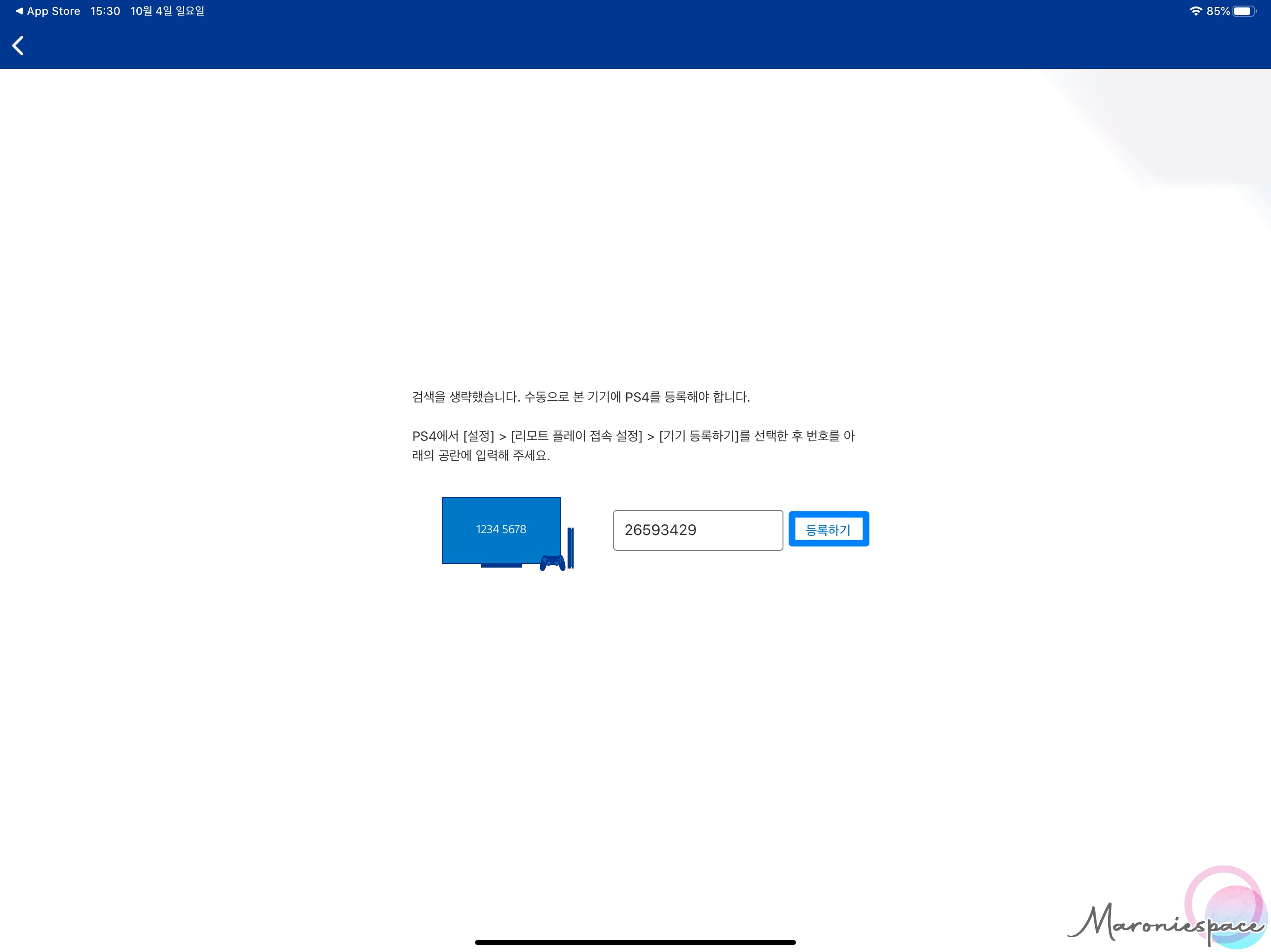로그인이 끝났다면 수동으로 등록하기를 누르고 PS4 화면에 출력되는 8자리의 코드를 입력해주세요.