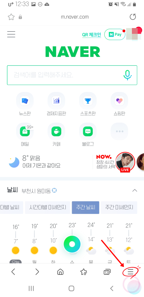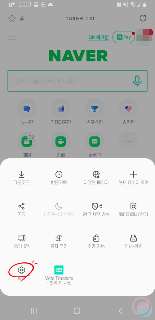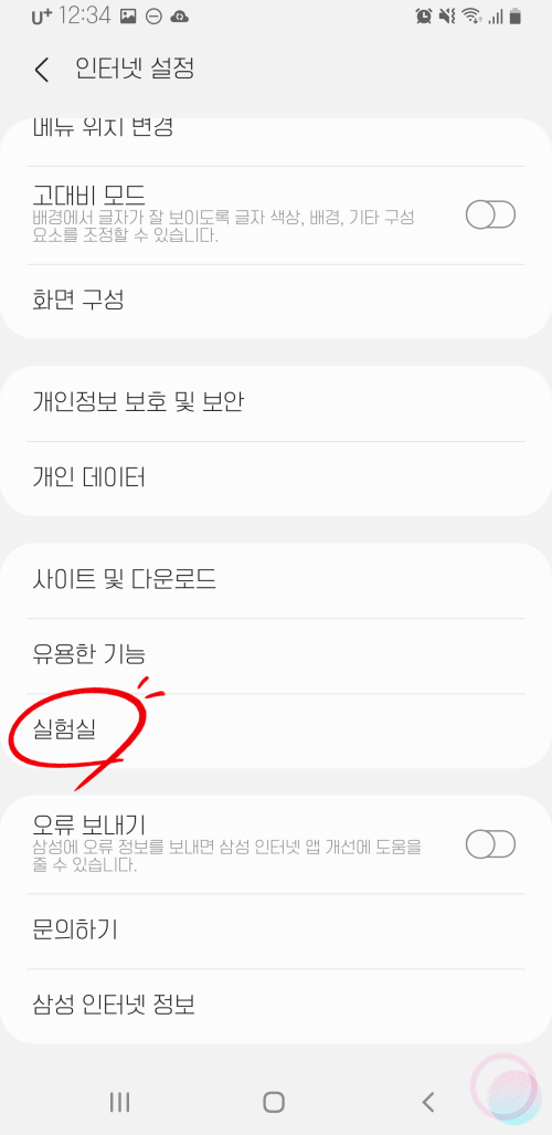 폰트를 변경하는 방법은 간단해요. 삼성 브라우저 우측 하단의 줄 3개를 누르고 설정에 들어가서