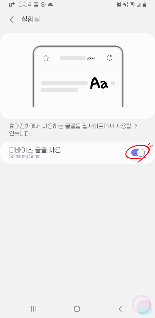 삼성 인터넷 브라우저v14.0.1.62 버전부터 공식적으로 폰트 변경 기능이 추가되어서 현재 시스템에 적용된 폰트를 삼성 인터넷 브라우저에도 적용할 수 있게 되었어요.😍
