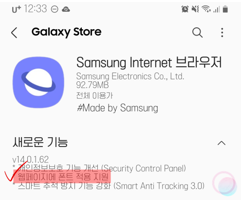 크흑.. 감격의 눈물이...😭 안그래도 갤럭시노트9 폰트를 변경했었는데, 변경한 고딕체 폰트가 브라우저에 너무 잘 어울려서 대만족이네요. 이제 폰트 변경까지 업뎃해줬으니 삼성 인터넷 브라우저에 더는 바랄게 없어요. 개발자님들 정말 진심으로 감사드려요!