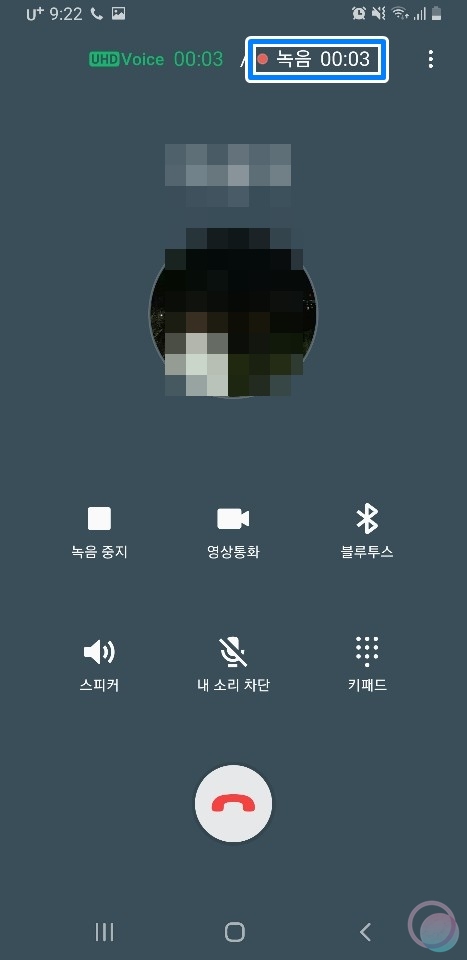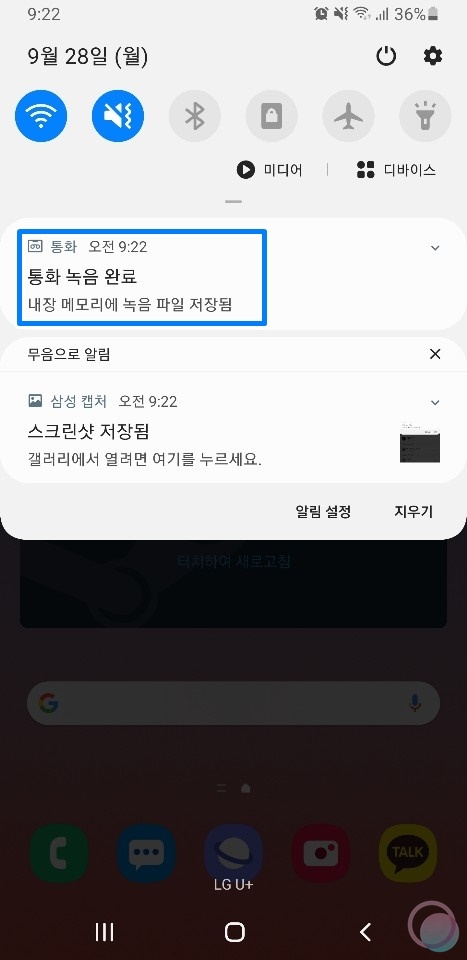 3) 통화 자동 녹음 기능이 활성화되면 통화가 끝났을때 내용이 녹음되었다는 메시지가 나타난답니다.
