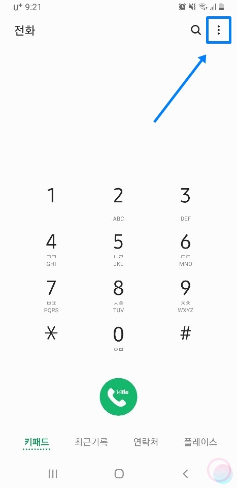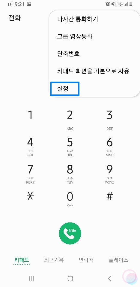 1) 통화에 들어가서 우측 상단의 점 3개를 눌러주고 설정에 들어갑니다.