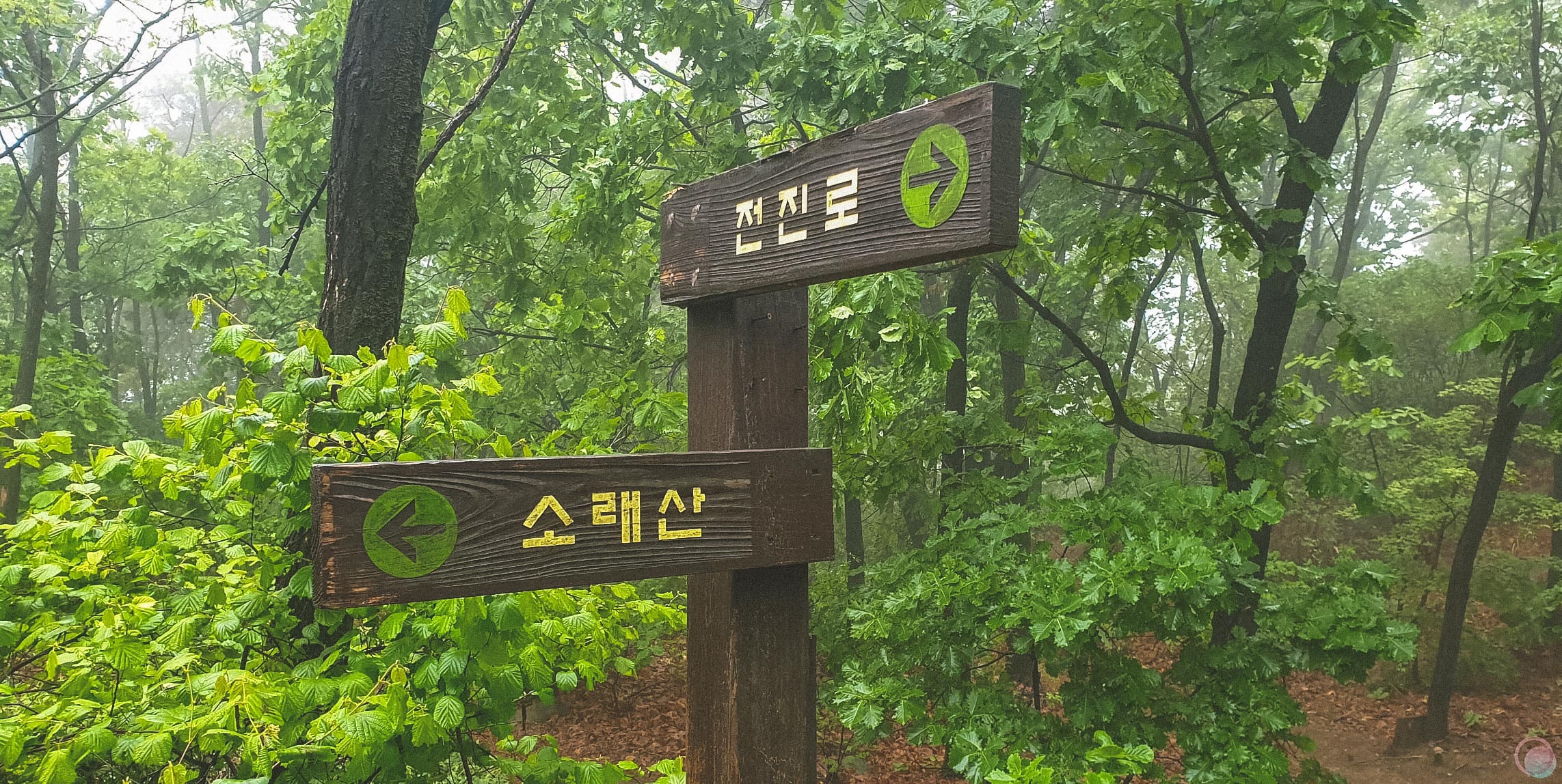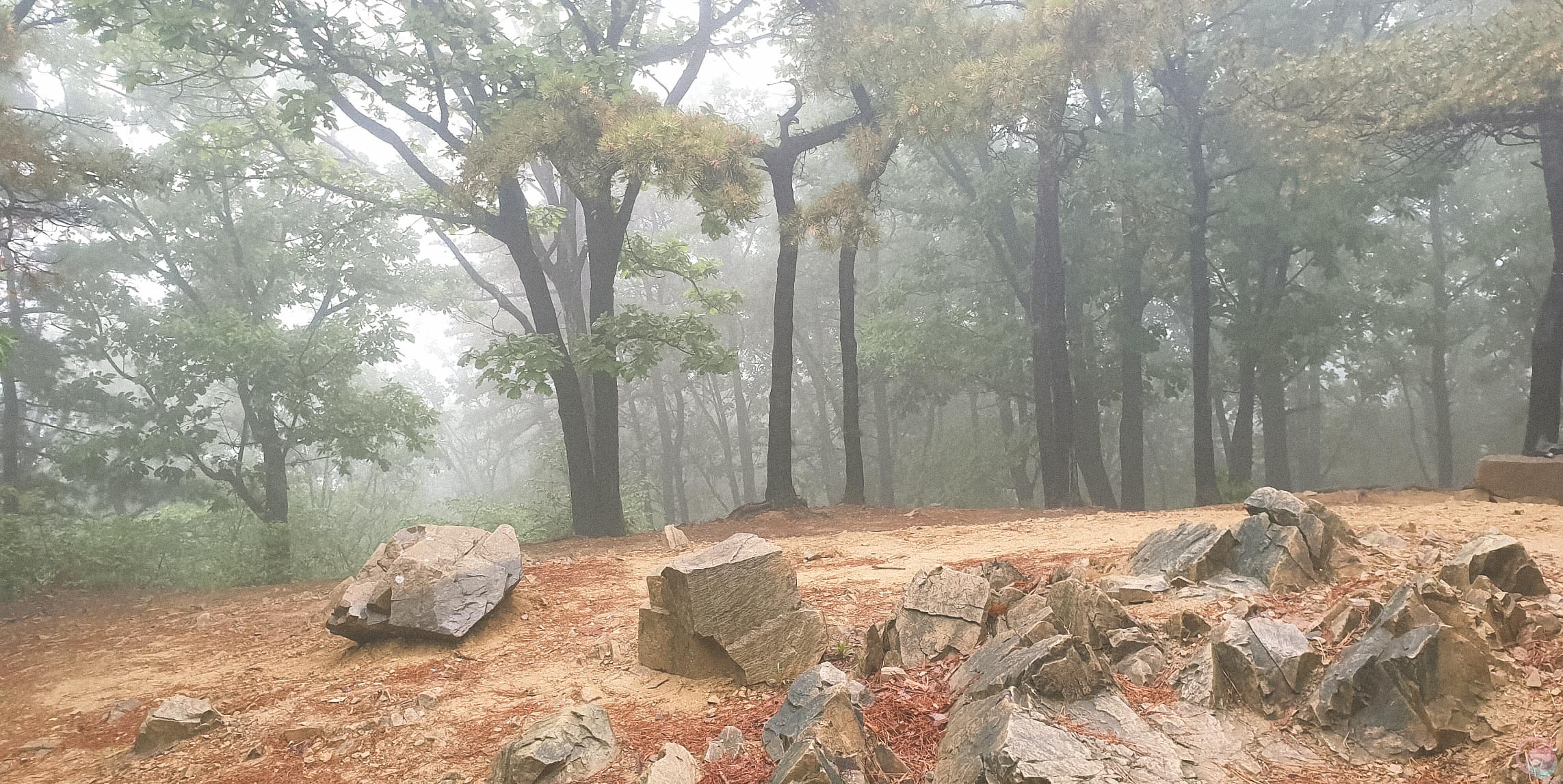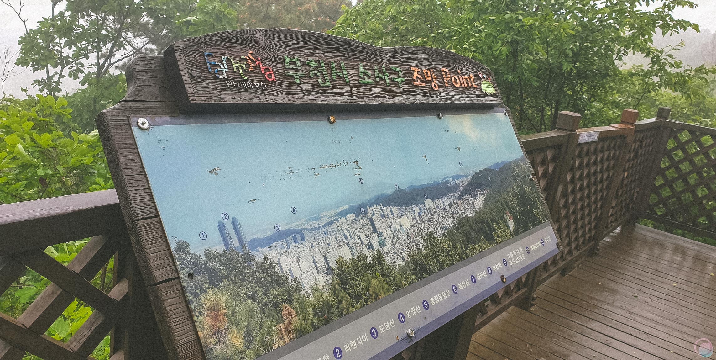 하산길에 조망포인트를 발견했어요. 원래는 이쪽 코스로 잘 다니지 않아서 몰랐는데.. 어느 순간 생겨있네요.. 세월이란.. 표지판의 내용을 보면 날씨가 좋을 때는 서울 남산타워까지 보인다고 하는데.. 안개 때문에 하나도 보이지 않았어요.