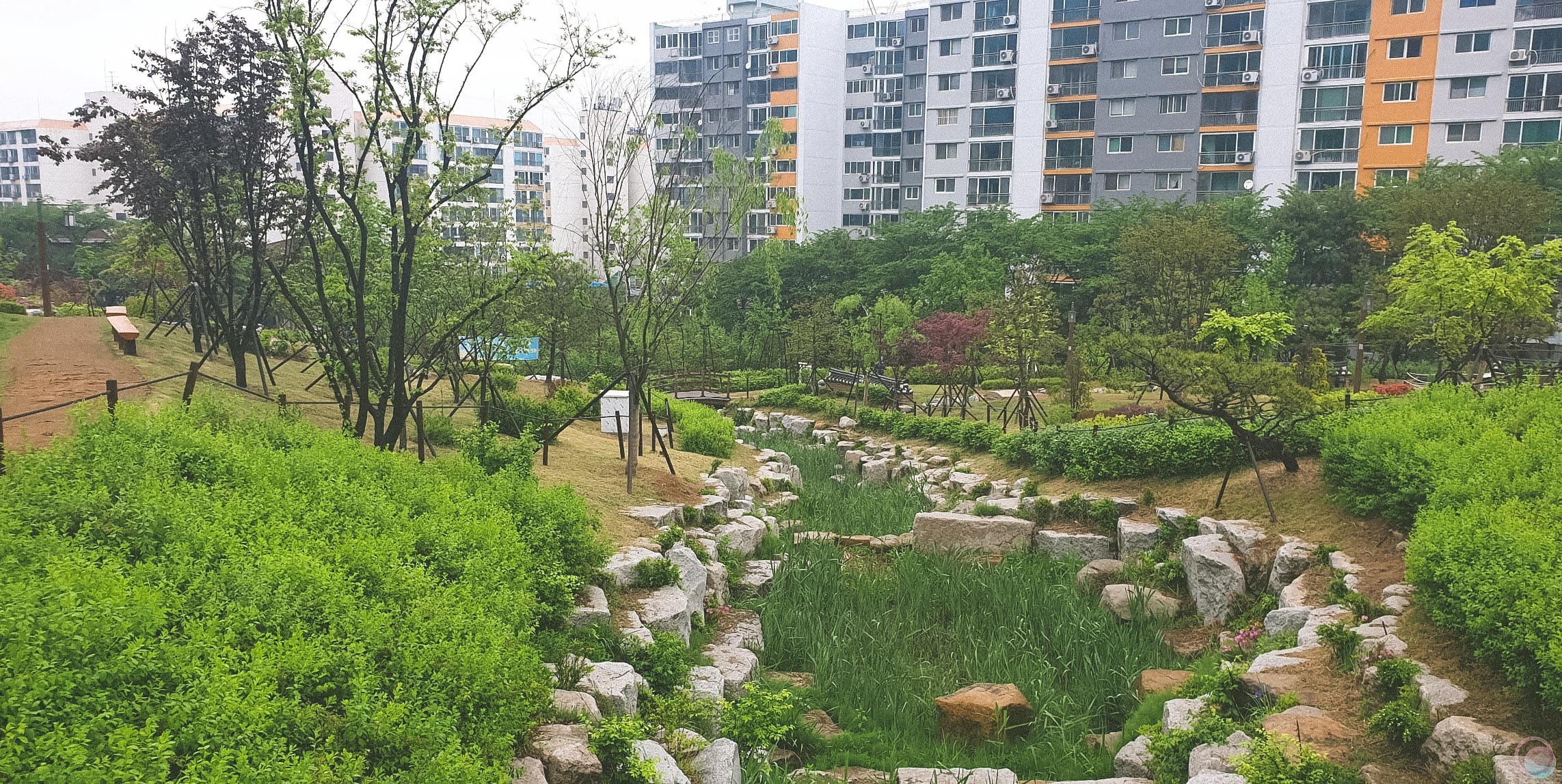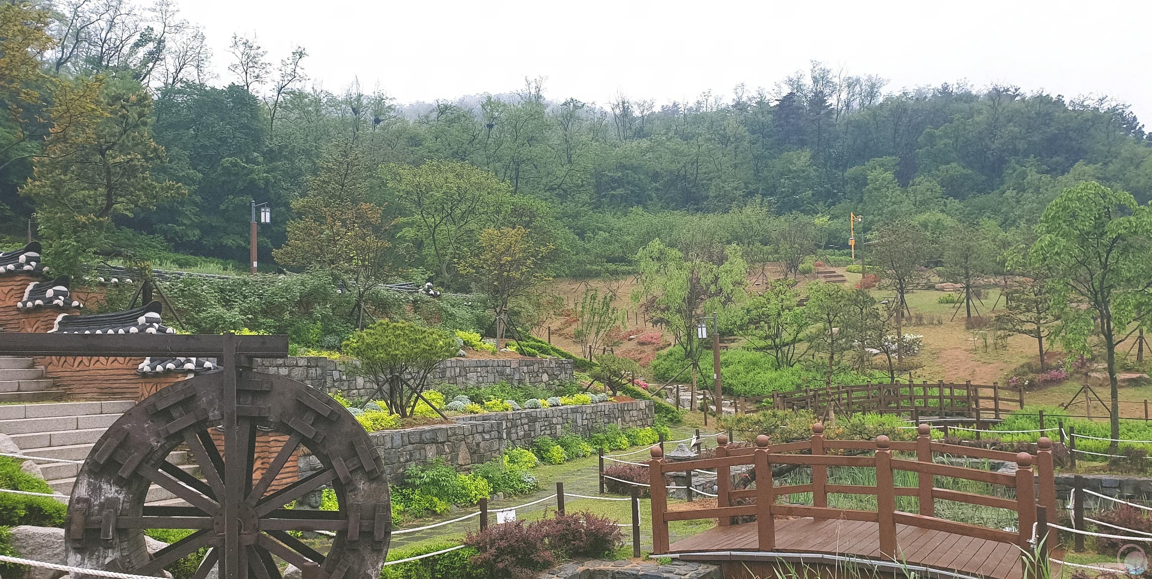 아무래도 송내공원의 테마는 한옥인 것 같네요. 물레방아와 기왓장, 그리고 장독대와 같은 소품이 가득했으며 담장이 사이사이 놓여져 있어서 아이들이 숨바꼭질을 하거나 술래잡기를 하기에는 최적의 장소라고 생각되네요.