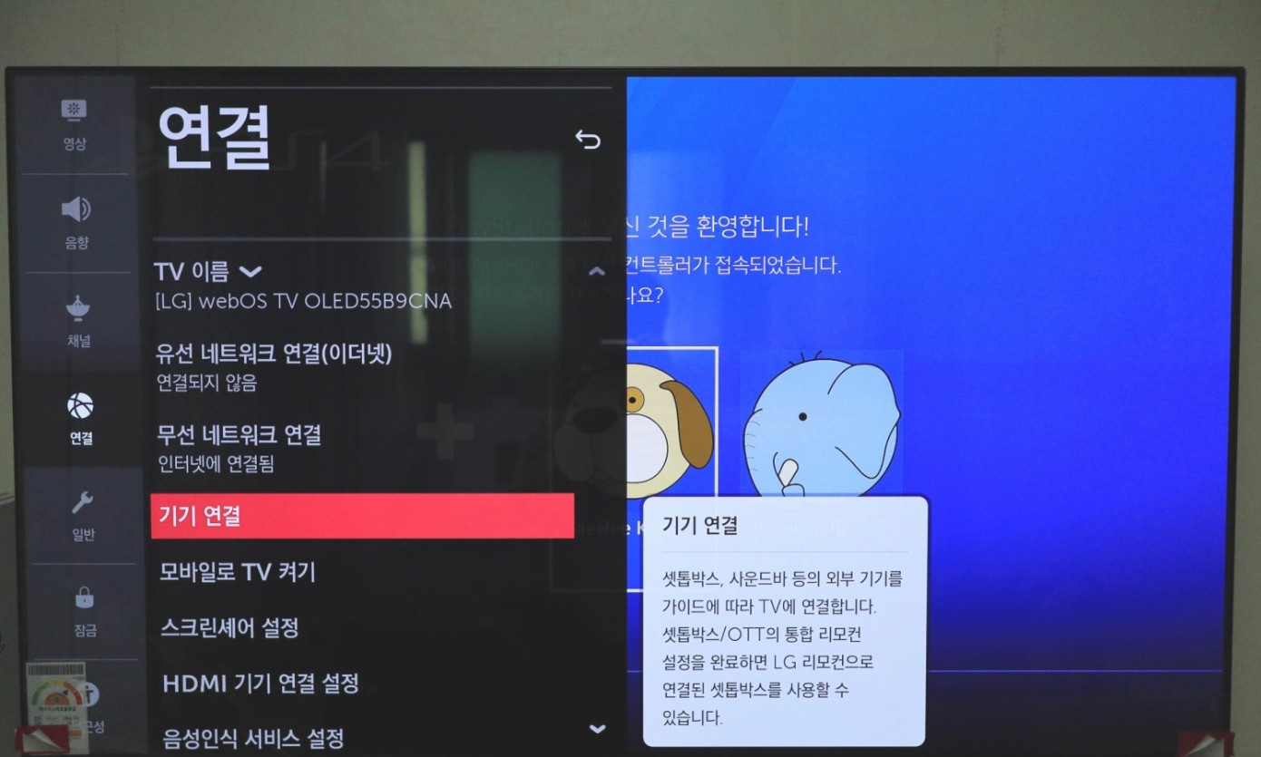 TV를 시청 중일 때에 USB를 연결하거나 PS4의 전원을 켜기만 하면 마지막으로 연결되었던 장치로 자동 연결(설정 가능)되는 기능이 정말 편했는데요. 예를 들어 LG 올레드 55인치 TV로 영화를 보다가 PS4가 하고 싶어서 전원을 켜기만 하면 리모컨을 찾아서 외부 입력을 누를 필요 없이 자동으로 연결을 해주는 게 별 것 아닌 것 같지만 정말 좋더라구요.