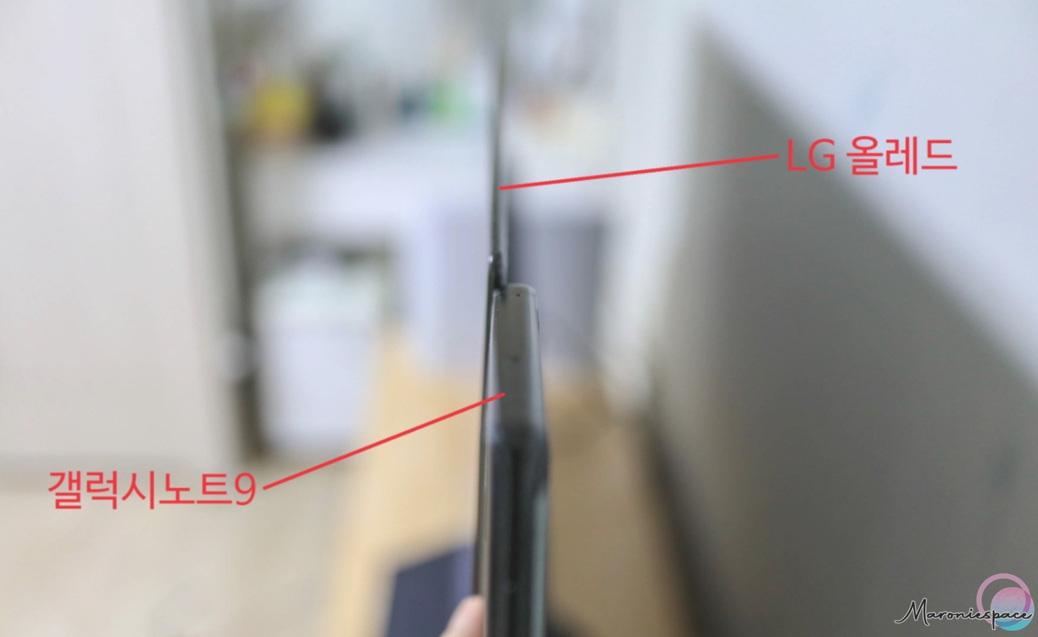 무엇보다 만족스러운 건 두께였는데요. 올레드 TV 특성상 스스로 밝기를 조절하는 자체발광이 가능하기 때문에 백라이트를 필요로 하지 않는다고 해요. 그렇기에 화면을 두껍게 만들 필요가 없기에 얇게 만들었다고 하는데요.