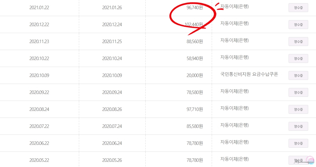 그랬더니 한 달에 7만 8천 원씩 나오던 핸드폰 요금이 10만 원대로 수직 상승하더라고요? 앞으로 1년을 노예 비용을 지불해야 하는데.. 10만 원씩은 너무 심한 것 같아서 급한 대로 요금제 다이어트부터 시작했습니다.