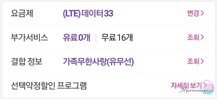 변경을 하고 나서 처음 느꼈던 감정은 "별 것 없네"였습니다. 33 요금제를 생각했을 때 보통은 노인분들께서 사용하시는, 오는 전화만 받고 문자만 보내는 요금제라고 생각했으나 실제로 제가 사용을 해보니 의외로 기본으로 지급되는 1.5gb라는 데이터도 넉넉하게 느껴졌고 와이파이만 있으면 이 데이터를 절대 초과하지 않을 것 같은 자신감이 들기 시작했습니다.