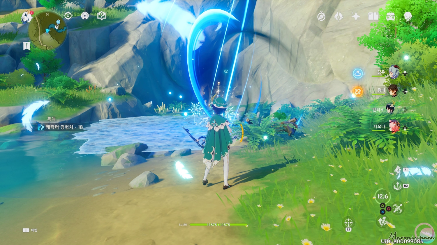 바로 인게임에 들어가서 확인을 해보니 기존보다 로딩이 확실하게 빨라졌고, 반응속도가 빨라진 것 같았어요. 무엇보다 가장 큰 프레임 드랍을 유발했던 지역인 리월 마을에서는 PC처럼은 아니지만 움직임이 한결 부드러워졌습니다.