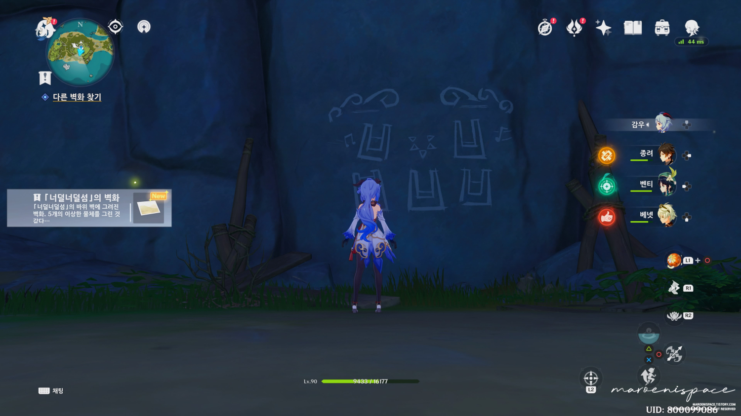 이 벽화를 카메라 모드로 사진을 찍으면 퀘스트가 본격적으로 진행됩니다. 벽화는 총 5개가 있는데, 이 섬에서 발견한 1개, 그리고 퀘스트가 알려주는 위태위태섬의 벽화 1개를 제외한 나머지 3개를 여행자가 직접 찾아야만 합니다.
