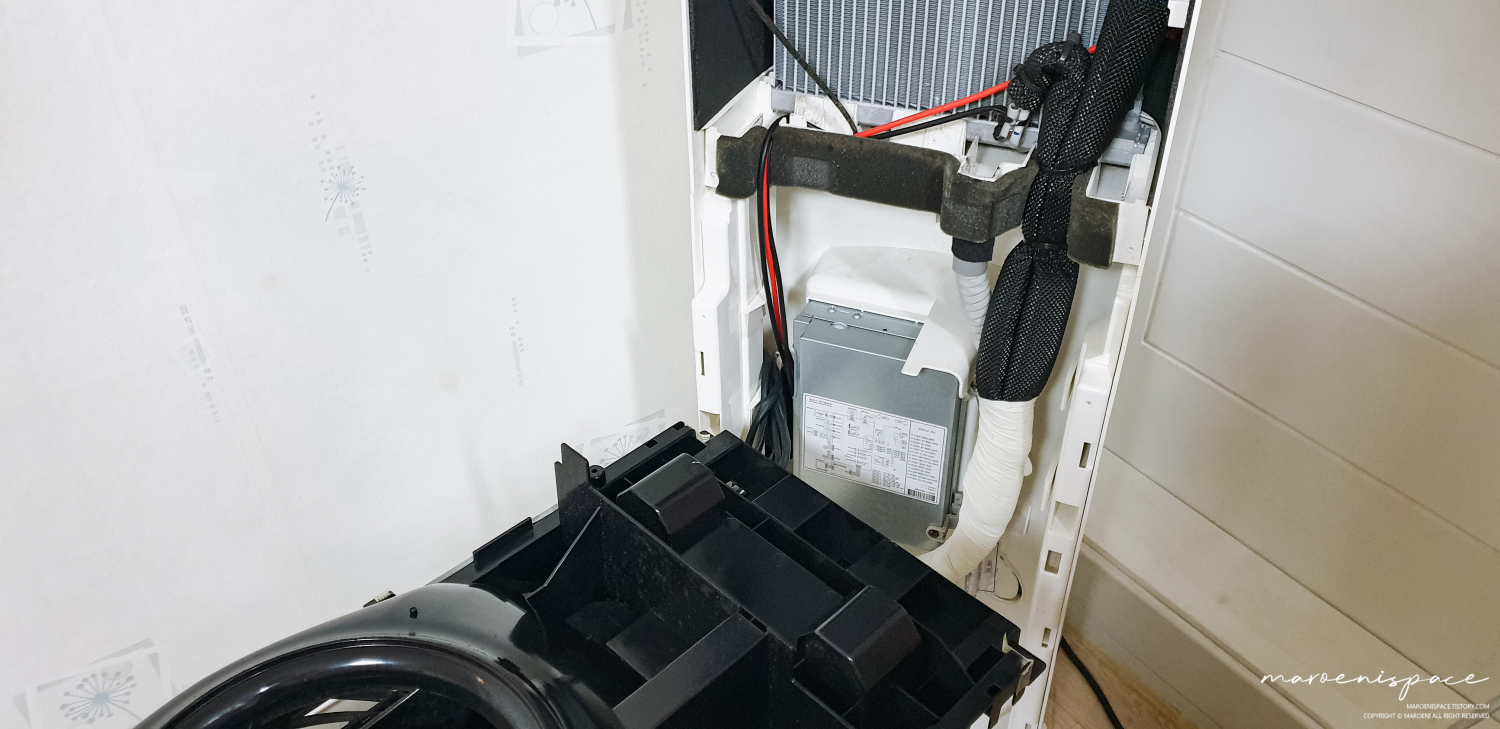 이렇게 휘센쨩의 부끄러운 갈비뼈가 드러납니다. 제가 청소해야 할 냉각핀은 갈비뼈 뒤에 위치하고 있기 때문에 조금 아프겠지만.. 과감하게 갈비뼈를 제거해보도록 하겠습니다.