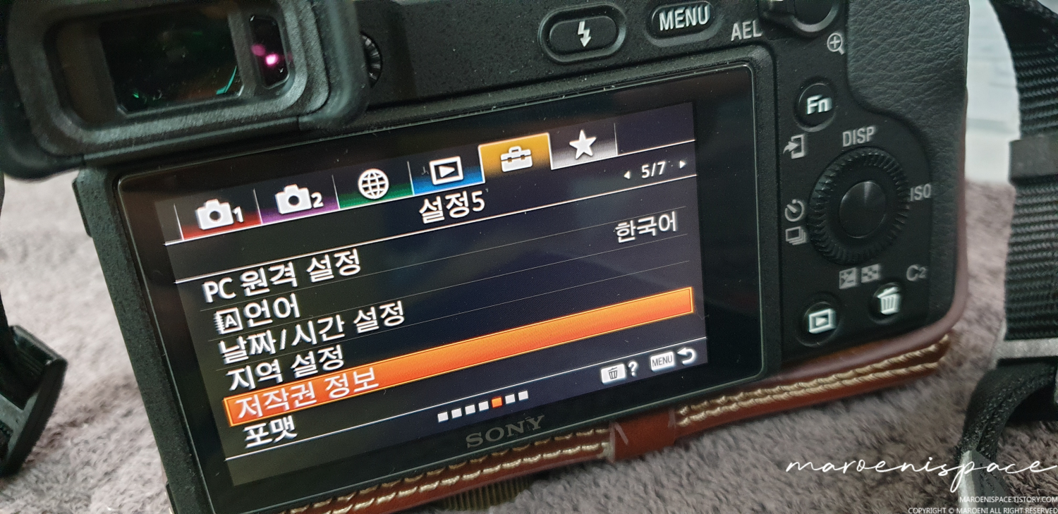 카메라를 중고로 구매했을 경우엔 초기화를 해서 판매하기 때문에 아무런 정보가 남아있지 않지만.. 바디 초기화를 하지 않았거나 이전 사용자가 저작권자를 설정해놓았을 경우에는 촬영했던 사진들이 계속해서 내가 아닌 이전 주인의 이름으로 저작권 정보가 남을 수 있으니 꼭 확인해보시길 바랍니다.