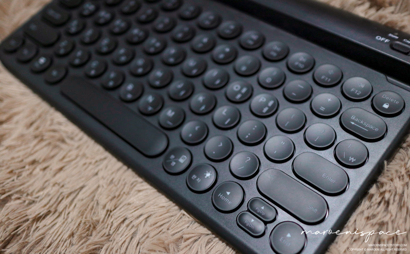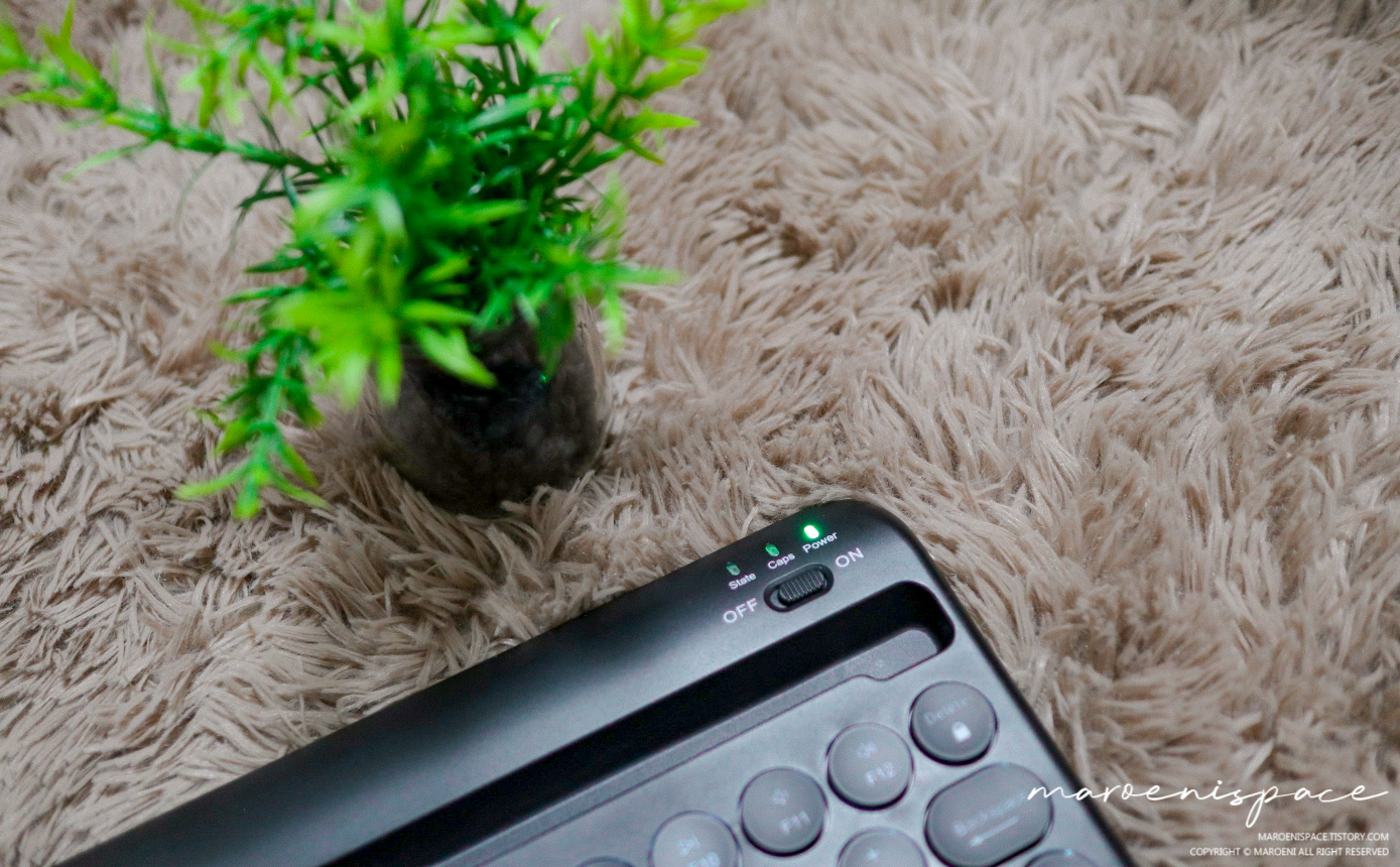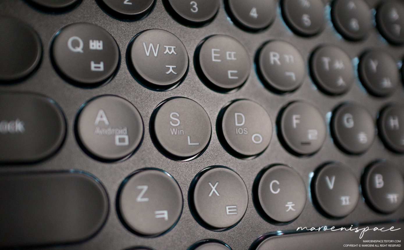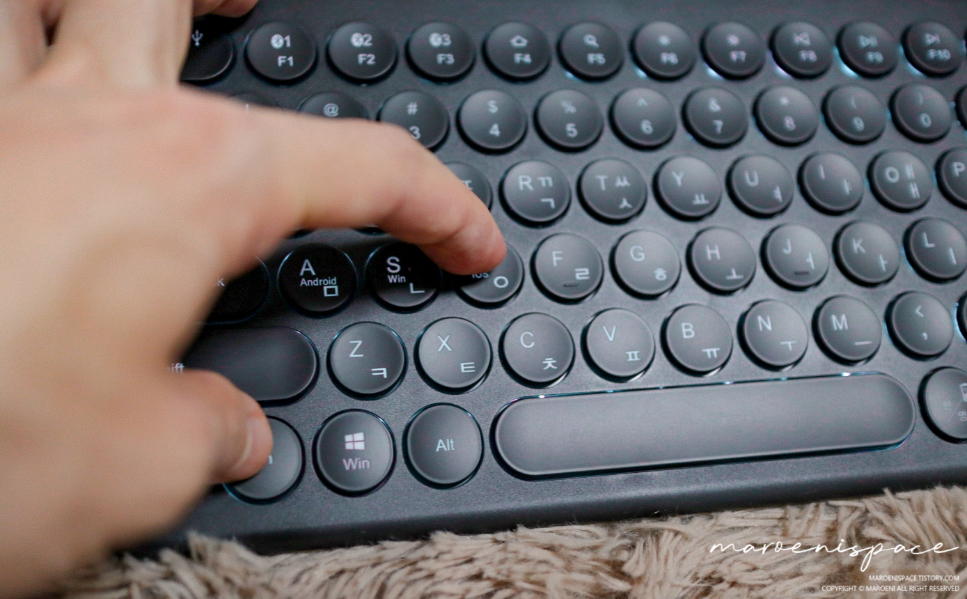 저가형이지만 페어링도 잘 되는 편이며 3채널 이용, 그리고 LED 감성까지 챙길 수 있다는 부분은 4만 원짜리 블루투스 키보드에서 보기 힘든 최대의 메리트 같습니다. 물론, 사용시간을 최대한 늘리려면 당연히 LED는 끄는 게 맞겠지만 심심할 때마다 사용해보면 기분전환도 할 수 있을 것입니다.