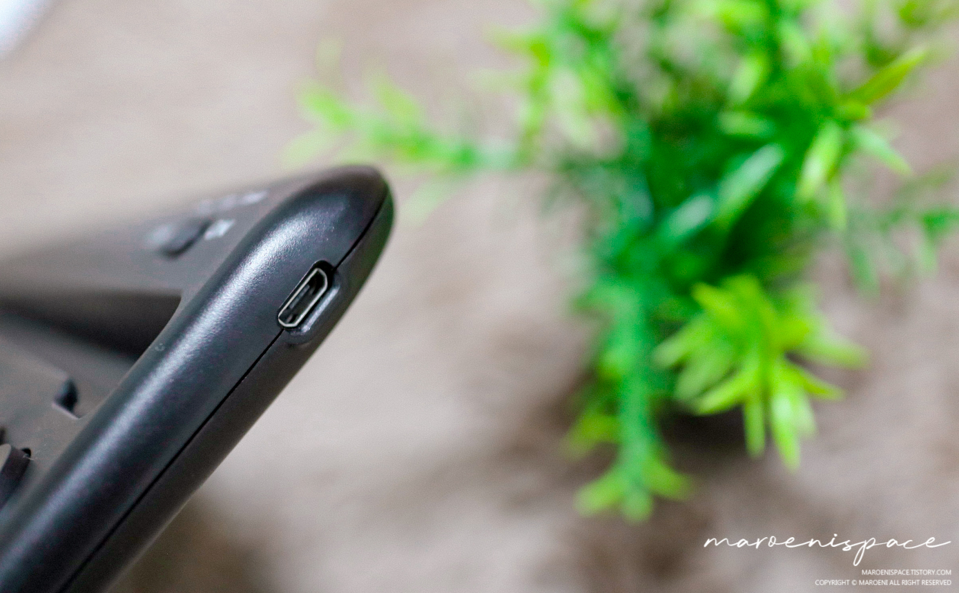유선 페어링도 간단해요. 핸드폰 충전 케이블을 이용해서 연결만 해주신 후 Fn+ESC키를 꾹 누르고 있으면 녹색 LED가 깜빡이다가 자동으로 연결된답니다~!