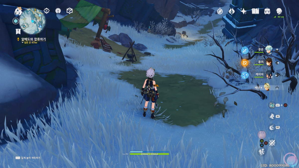 해당 퀘스트를 진행하기 위해서는 설산에 있는 일곱신상으로 워프를 하고