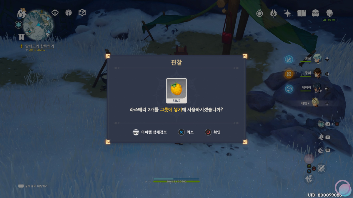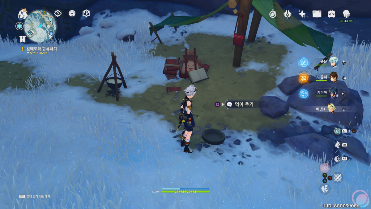 캠프 앞을 살펴보면 먹이통이 보이고 먹이 주기라는 선택지가 나타납니다.