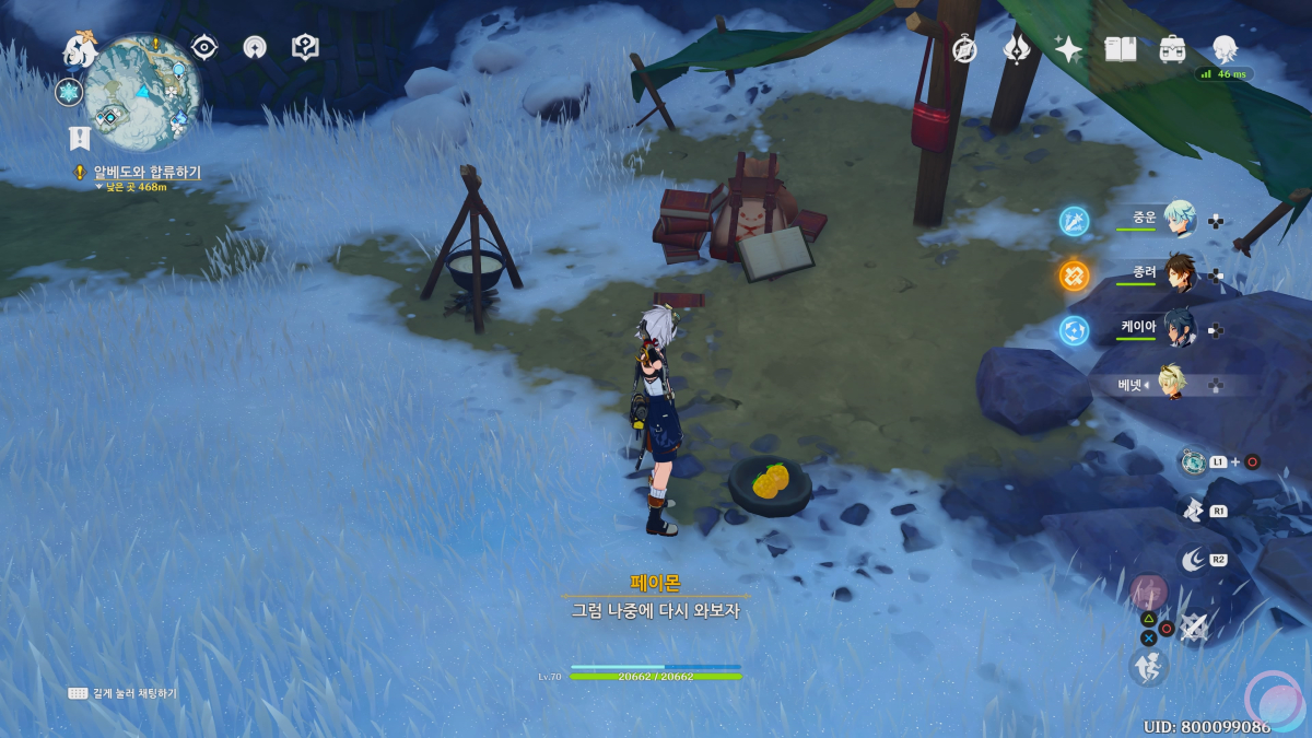 설산에 진입할 때 진행되는 퀘스트 중에서 NPC 요엘의 아버지 흔적을 찾아내는 퀘스트가 있는데, 해당 퀘스트를 완료할 경우 요엘의 아버지는 찾아내지 못한 채 퀘스트가 끝나게 됩니다. 다만, 여기에 연계된 퀘스트가 하나 존재하는데 그것은 바로 먹이 주기 입니다.