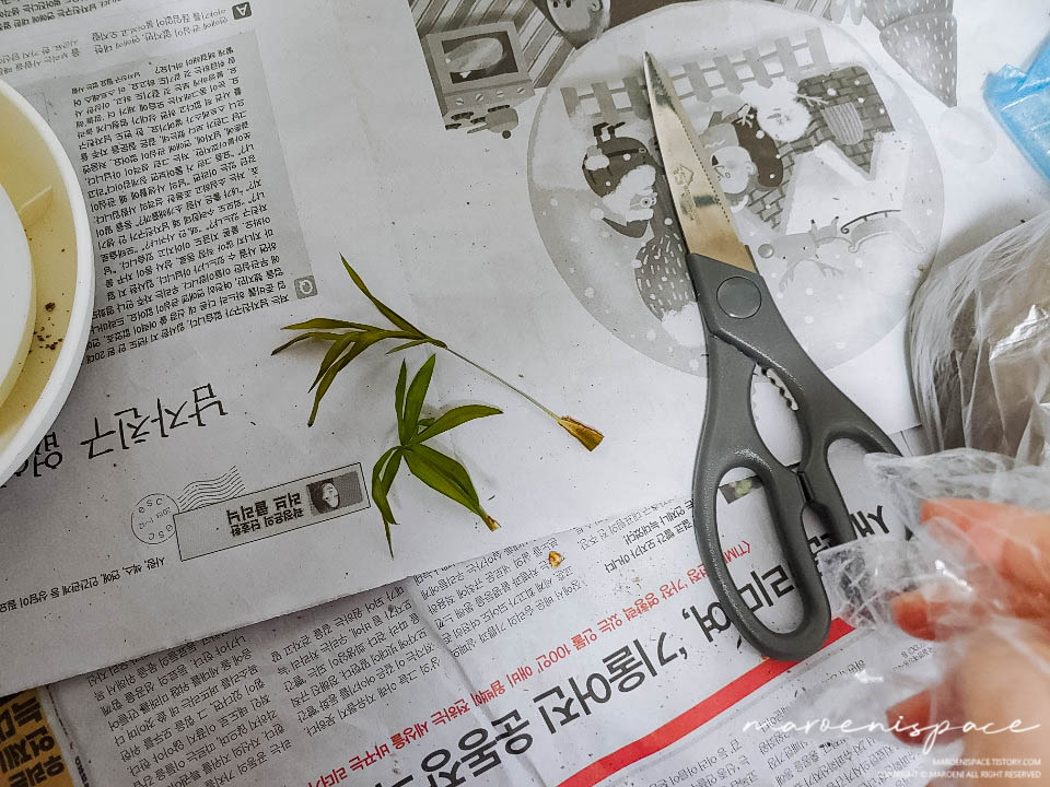 우선은 수경재배부터 진행해볼텐데, 모래를 흘릴 수 있기에 신문지를 넓게 깔아주고
