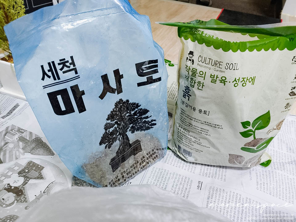 마사토와 자갈도 준비해줍니다. 저는 다이소에서 구매했어요.