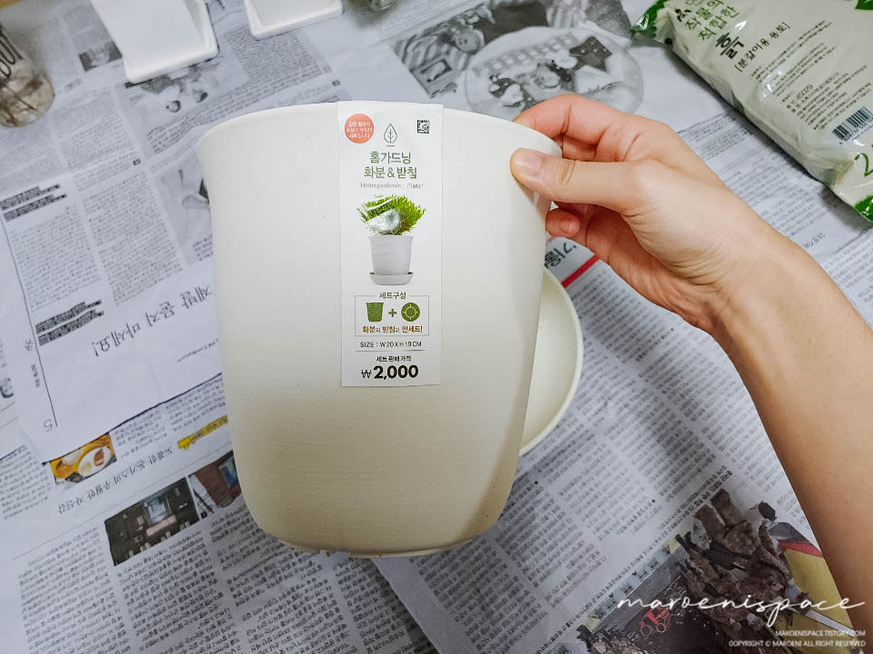 인터넷으로 무작위로 구매하다 보니 화분 크기와 식물의 크기가 맞지 않아서 보기에도 별로 안이쁘고 마음에 들지 않았는데 드디어!! 손을 볼 수 있게 되었네요.