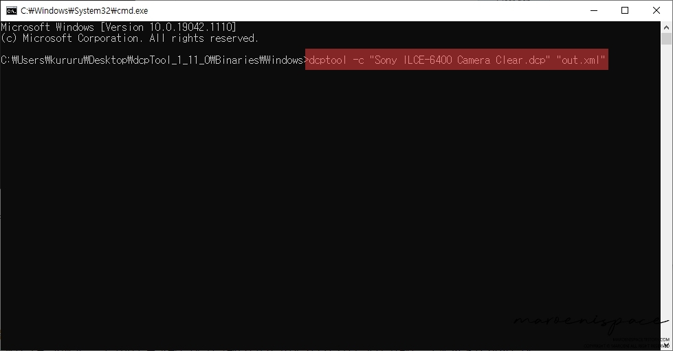 dcptool -c "out.xml" "원하는 이름.dcp"