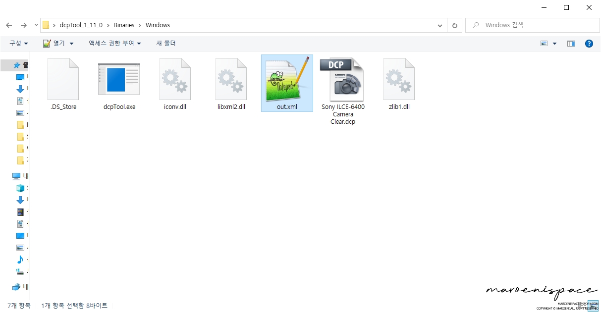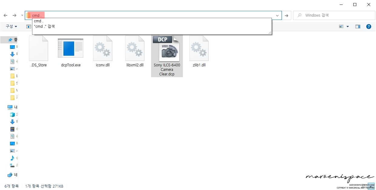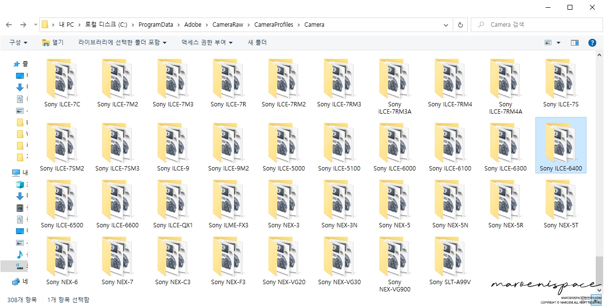 제가 사용 중인 바디는 a6400이니 해당 바디를 예시로 설명드릴게요. 폴더 안으로 들어가시면 제조사에서 지원하는 카메라 프로파일인 dcp파일이 나오는데 아무거나 하나 복사해주세요.