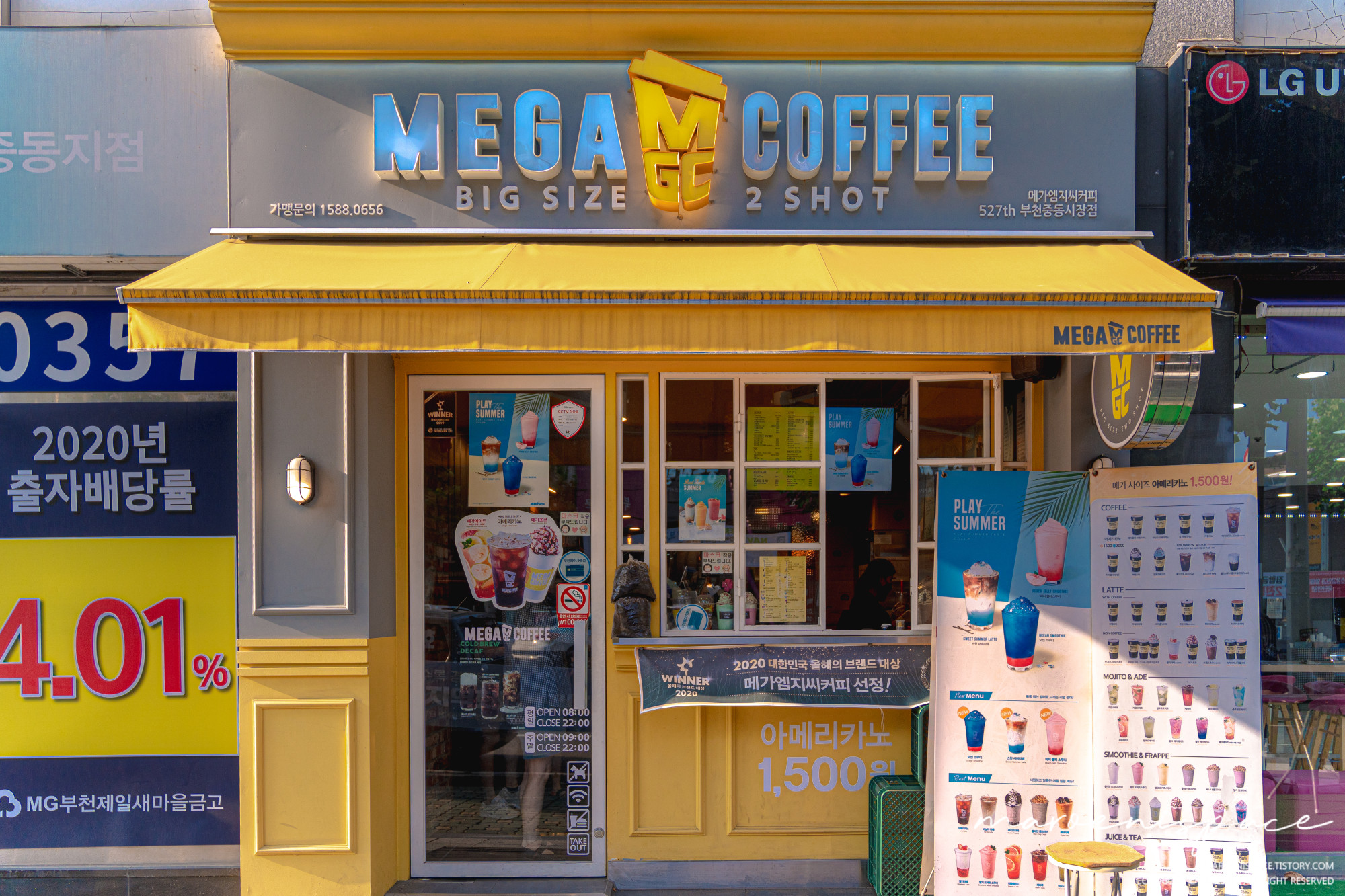 부천으로 돌아와서는 타는듯한 갈증을 달래기 위해 메가커피 딸기요거트로 마무리.
