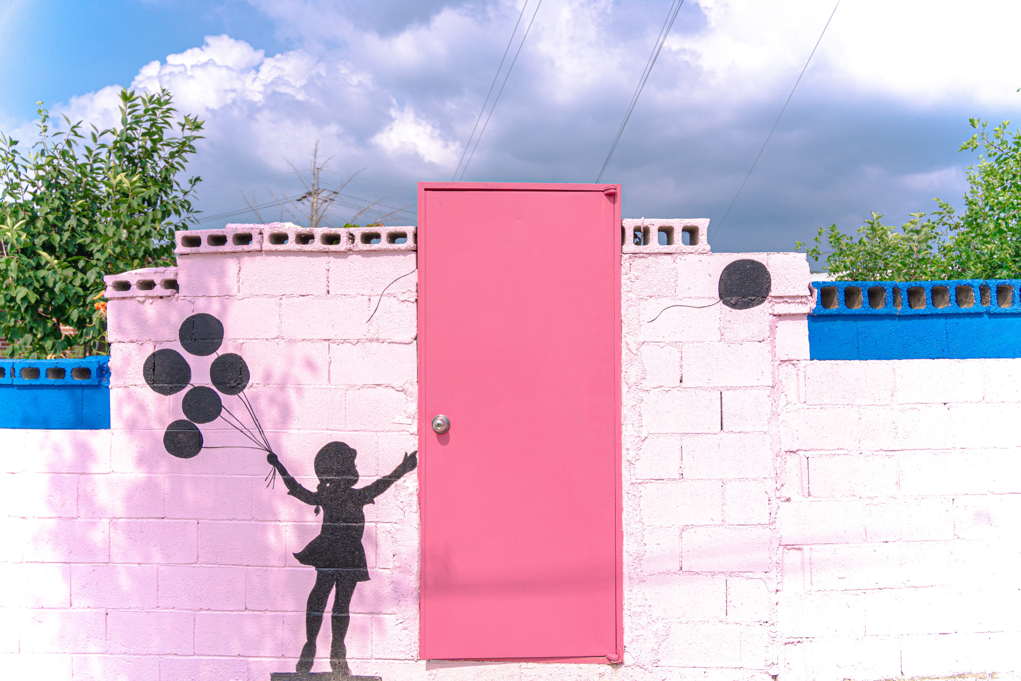 벽 너머에 뭐가 있을지 궁금증을 유발시키는 핑크핑크문.