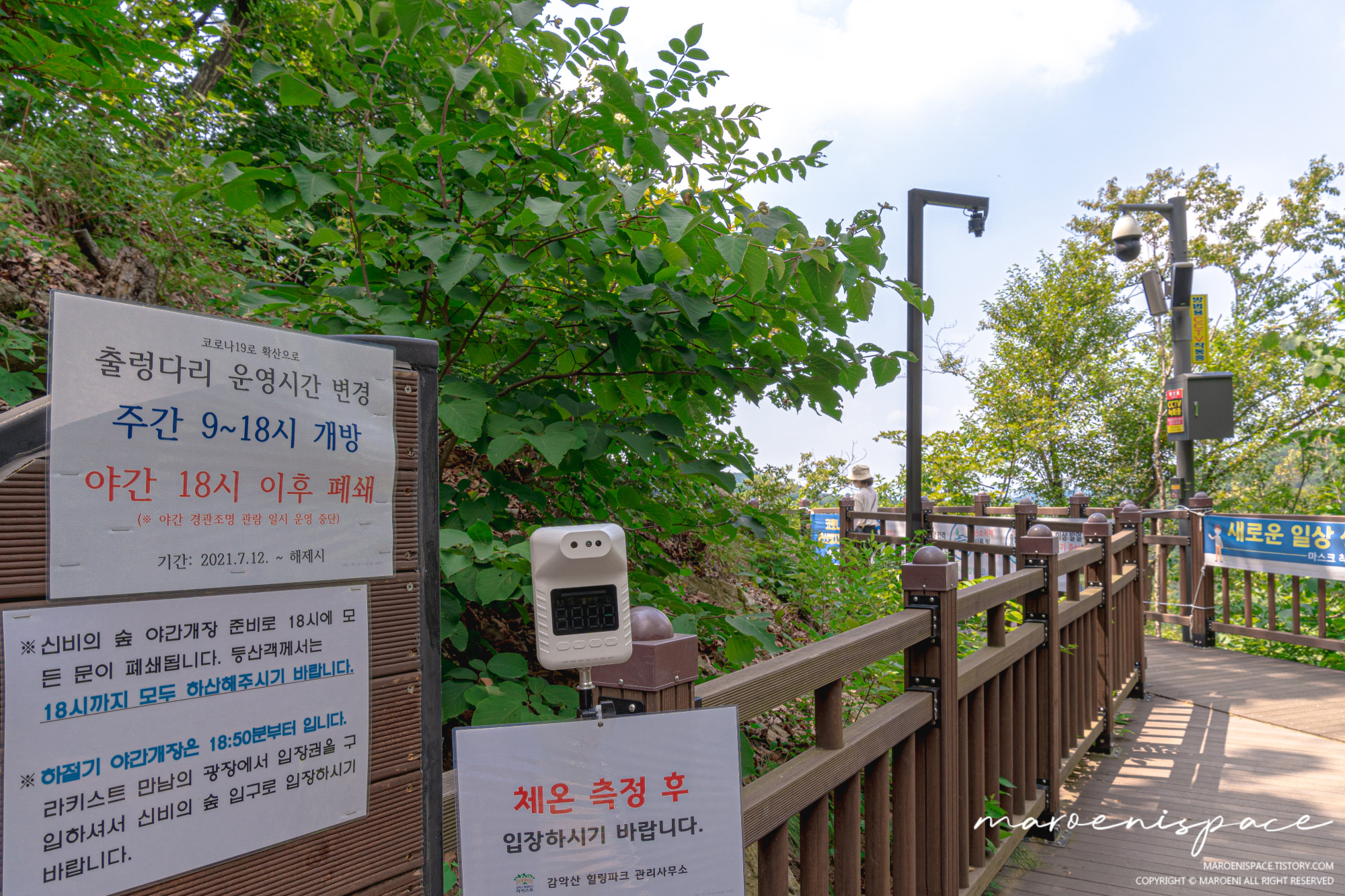 출렁다리 입구에는 체온을 측정하는 곳이 있어서 안심하고 이용할 수 있어요.