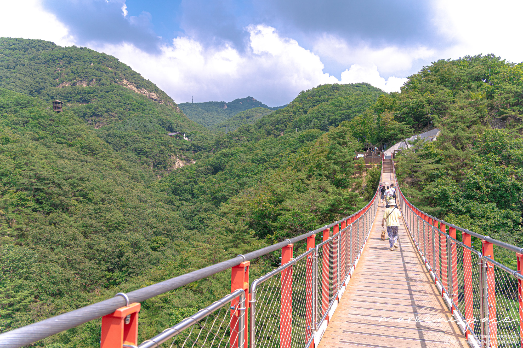 범륜사 루트는 보통 범륜사-운계전망대-운계폭포-출렁다리 코스가 정석이지만, 찜통 같은 날씨 때문인지 운계폭포가 말라버려서 물이 말라버렸더라구요. 그래서 운계폭포는 스킵하고 출렁다리로 바로 이동했어요.