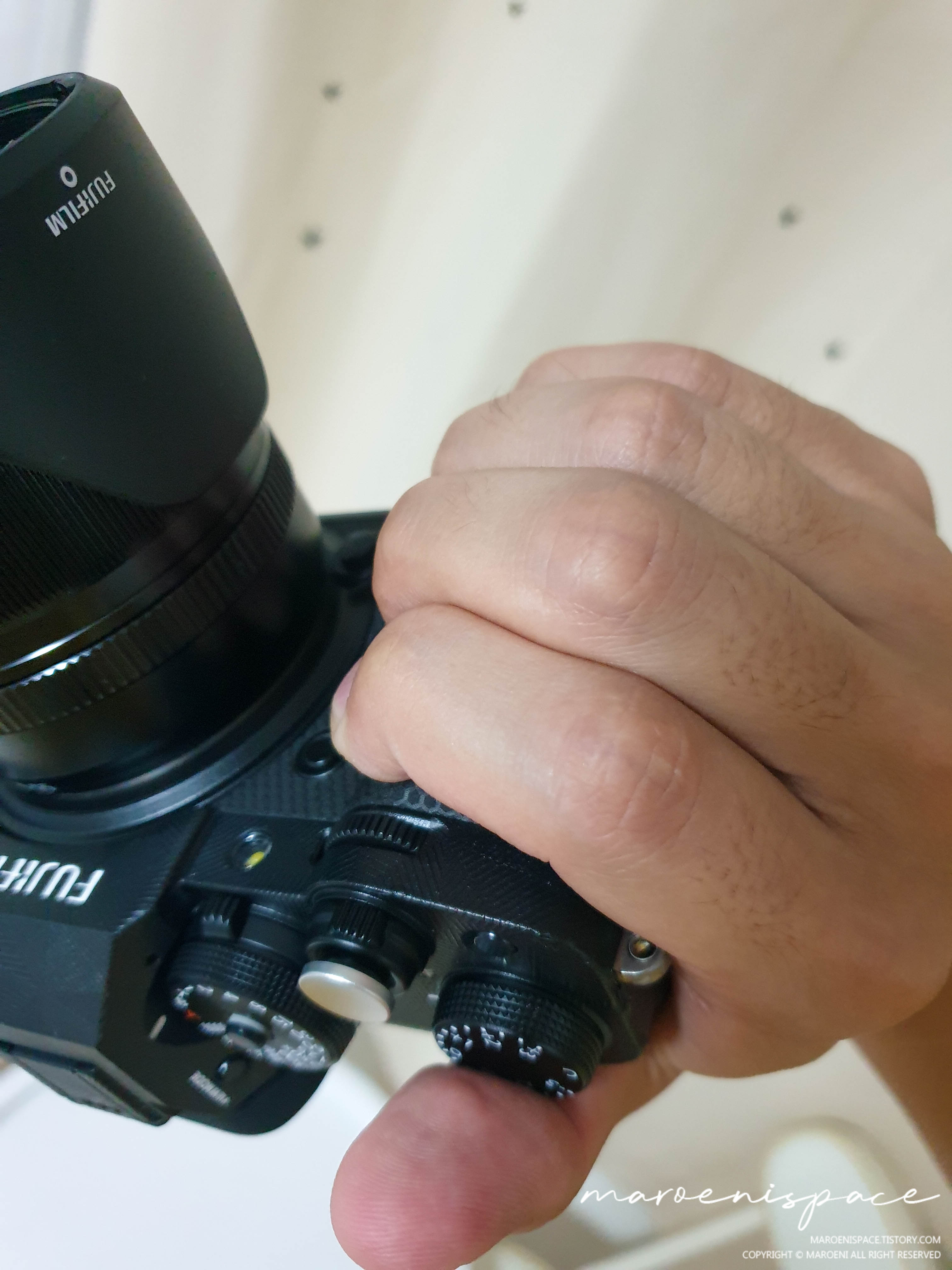 구매하기 전에 여러 커뮤니티에서 X-T4의 그립감이 좋지 않다는 평가를 들었었는데, 막상 제가 18-55mm 렌즈를 마운트 한 후 파지해보니 제 손에는 아주 잘 맞았습니다. A6400를 사용했을 때에는 속사 케이스 없이 살짝 남는 것 같은 느낌이 들었었는데 후지 X-T4는 남는 공간 없이 아주 만족스러운 그립감을 보여주었어요. 손 크기에 따라 다를 수는 있겠지만 적어도 제 기준에서는 90점 정도?