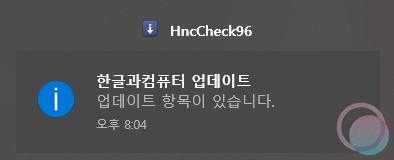 한글프로그램이 깔려있지 않은 탓에 하는 수 없이 한컴 뷰어라도 사용하고 있는데, 이게 시도 때도 없이 한컴오피스 업데이트를 하라는 알림이 나타나더라구요. 그냥 방치해도 큰 문제가 되지는 않지만 PC를 켜둔채 다른 방에서 작업을 하다 보면 계속 업데이트 알림이 띵리링 하고 울려서 개인적으로 정말 거슬렸습니다.