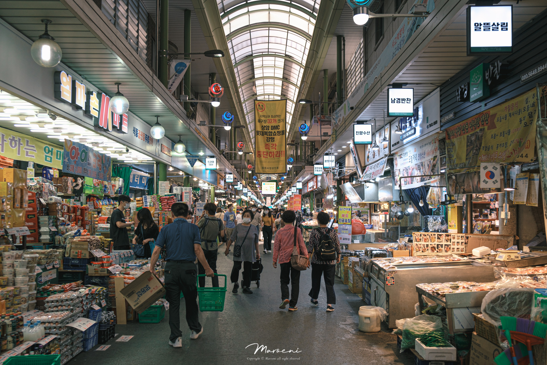 망원동에 도착하고 나서 바로 핫플레이스라고 하는 망원시장부터 가봤는데 저희 동네의 상동시장 중동시장처럼 월드컵시장과 망원시장도 신호 하나를 두고 서로 마주 보고 있더라구요.