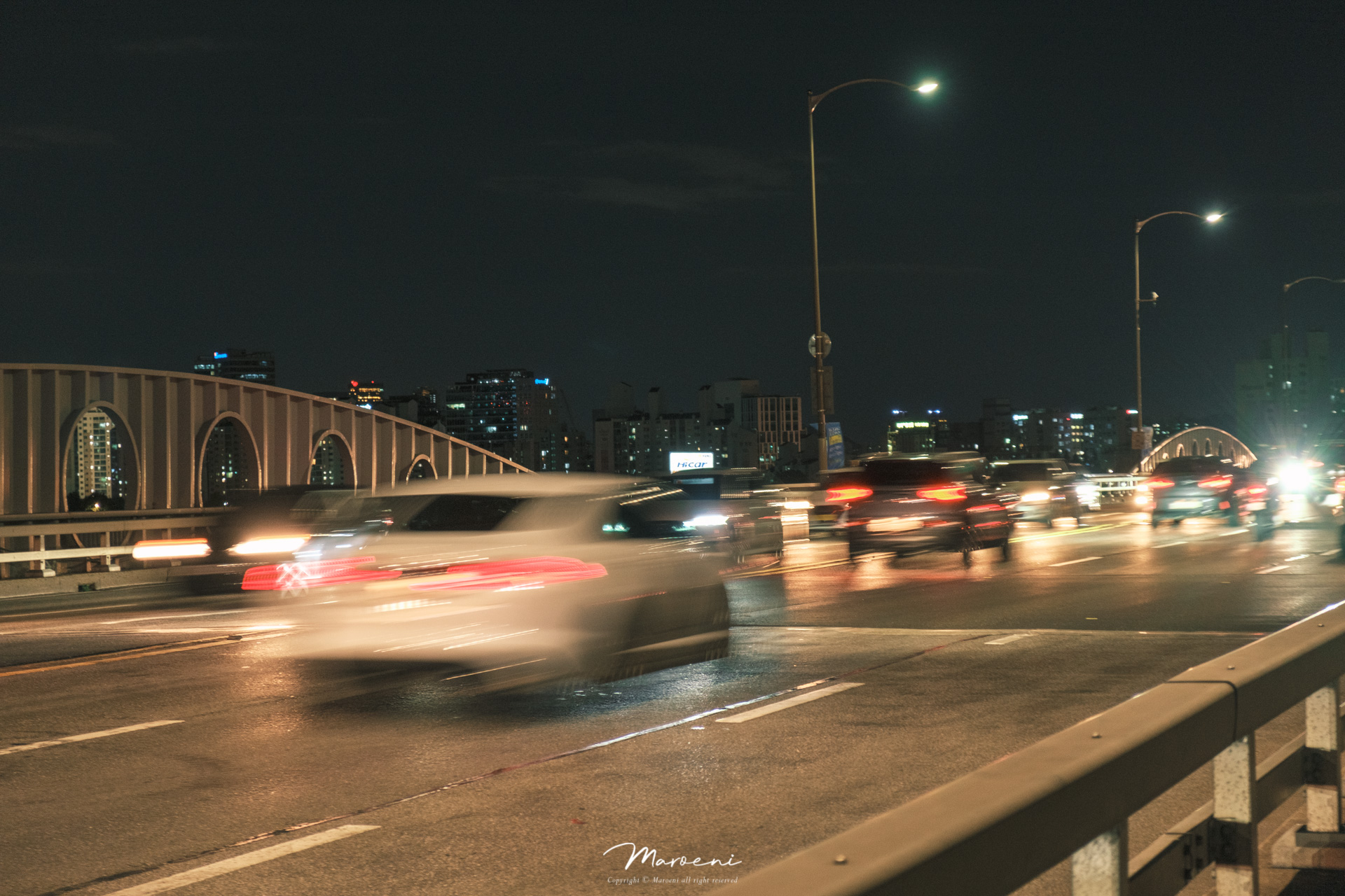 와...!! 진짜 잘찍힘ㅋㅋ T4 손떨방과 1855의 렌떨방이 합쳐지니까 삼각대 없이 셔터속도 1/3초까지 커버되는 걸 보고 입이 떡 벌어졌습니다. 혹시 우연은 아닐까? 내가 순간적으로 JYP도 만족할 정도의 호흡조절을 구사했던건 아닌걸까? 싶어서 성산대교 위로 올라가 다시 한번 셔터를 눌러보았어요. 차~알~칵! 조금 느린 셔터속도.. 결과물은..?