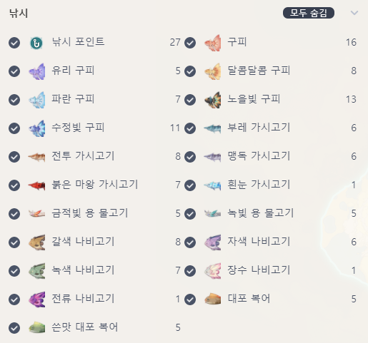 전체 물고기와 낚시 포인트 확인하러 가기: 링크
