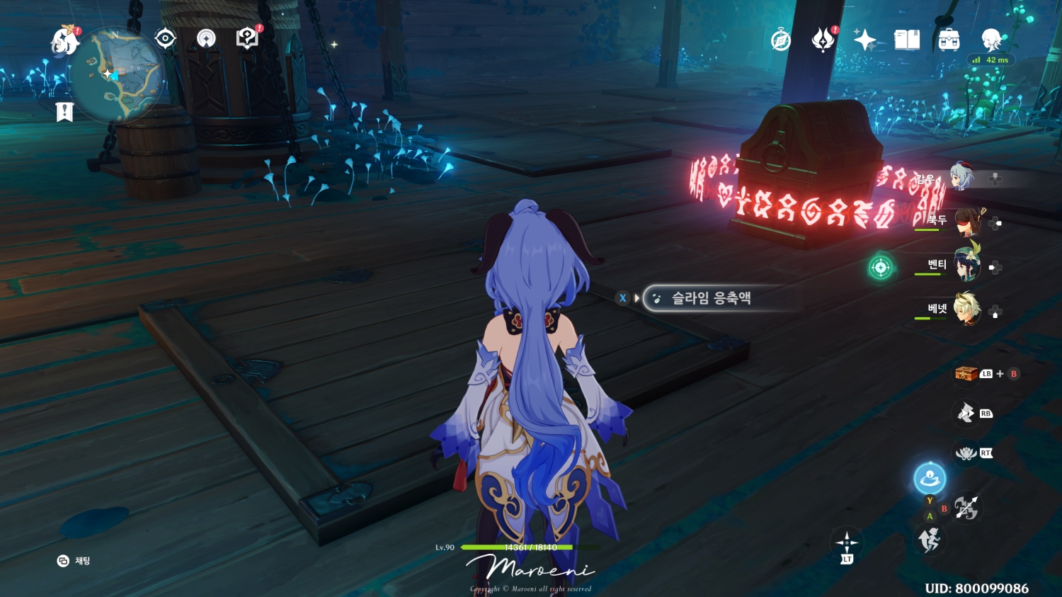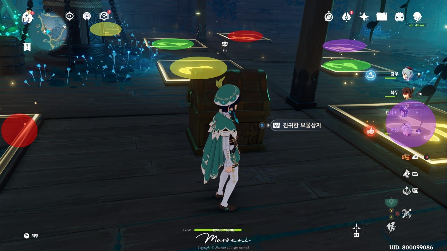 열쇠를 이용해서 문을 열고 들어가면 상층부터 인도했던 선령과 화려한 보물상자가 있습니다. 마찬가지로 네모 형태의 기믹을 풀어주고 상자를 획득한 후