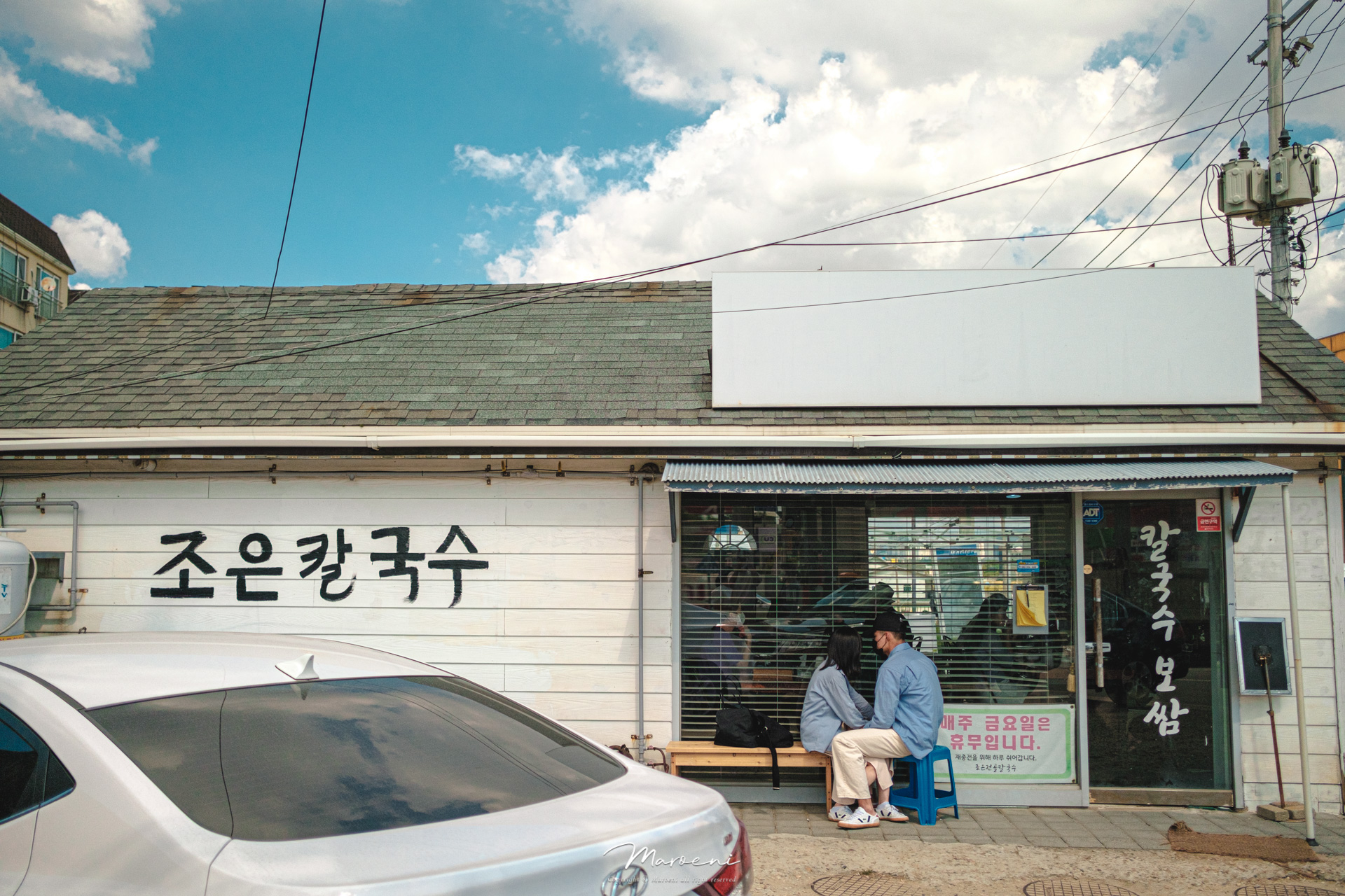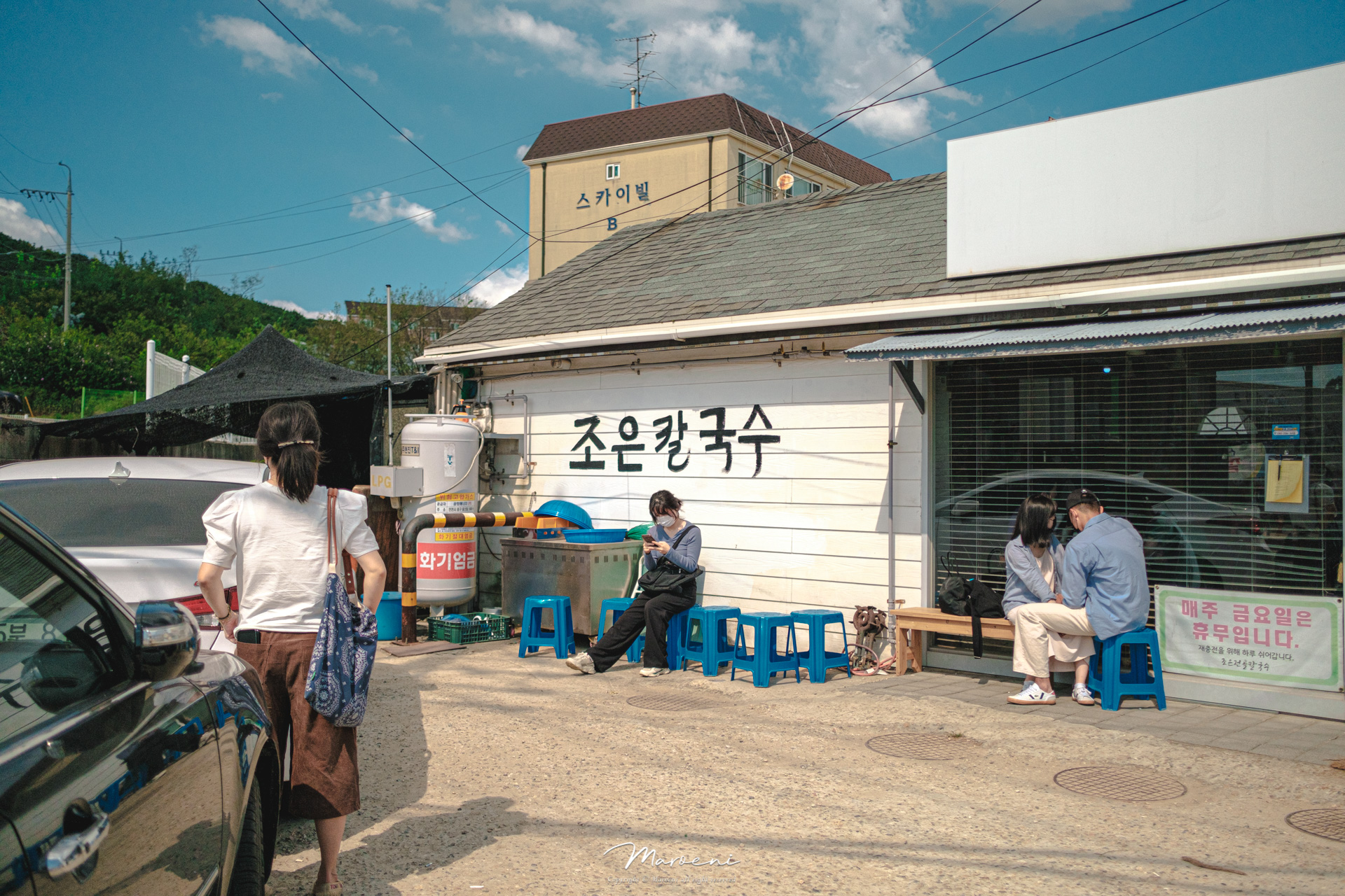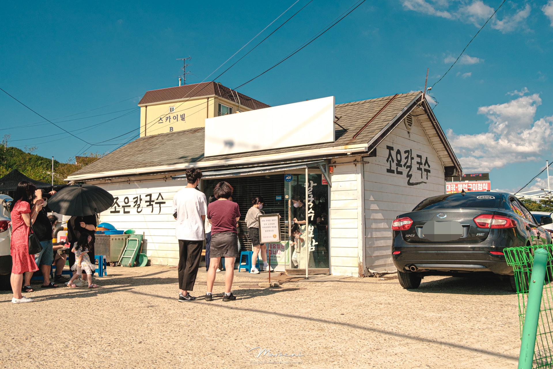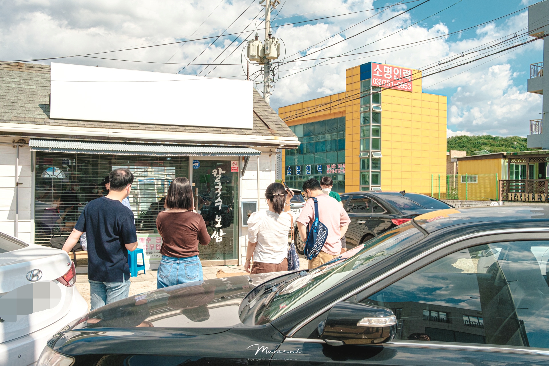 기다리는데 3팀이 더 들어오셨어요. 다들 자가용을 타고 오셔서 그런지 주차공간을 한참을 찾으셨는데, 주변에는 다 불법주정차 단속 구역이라 칼국수집 앞이 아니고서야 주차할 곳도 넉넉하지가 않더라구요. 여름이니까 이 정도지.. 만약 겨울이었다면 따땃한 국물 때문에 웨이팅이 더 길어지지 않을까요..?