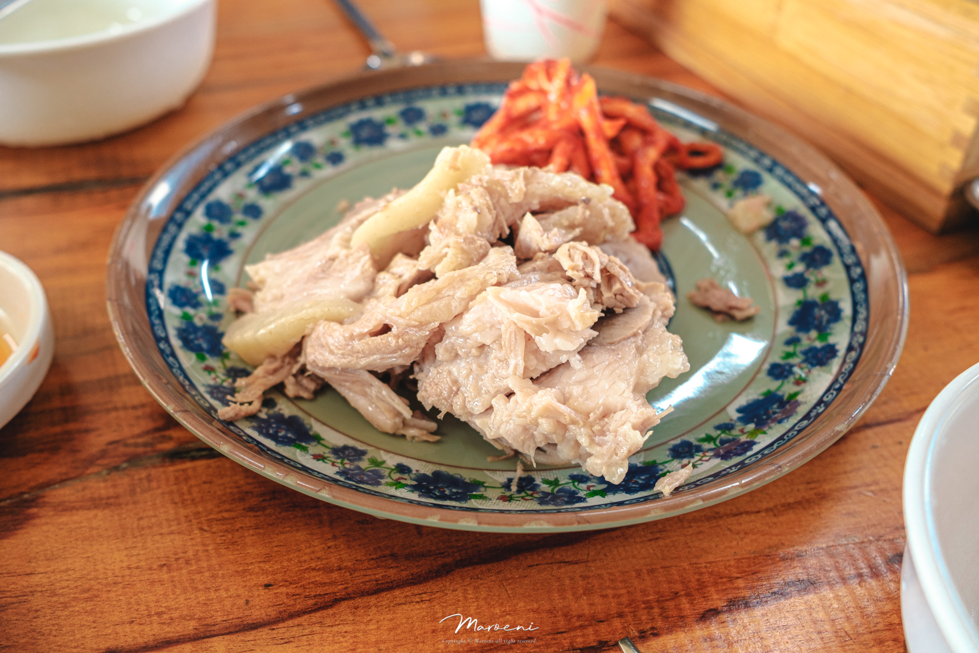 기본찬은 배추김치와 깍두기, 그리고 보쌈과 먹을 새우젓과 칼국수 양념장이 나와요. 김치와 깍두기는 제 입맛 기준에서 살짝 달달한 편이었는데, 설탕이 약간 많이 들어간 것 같긴 하지만 그래도 뭐 나쁘지는 않았어요.