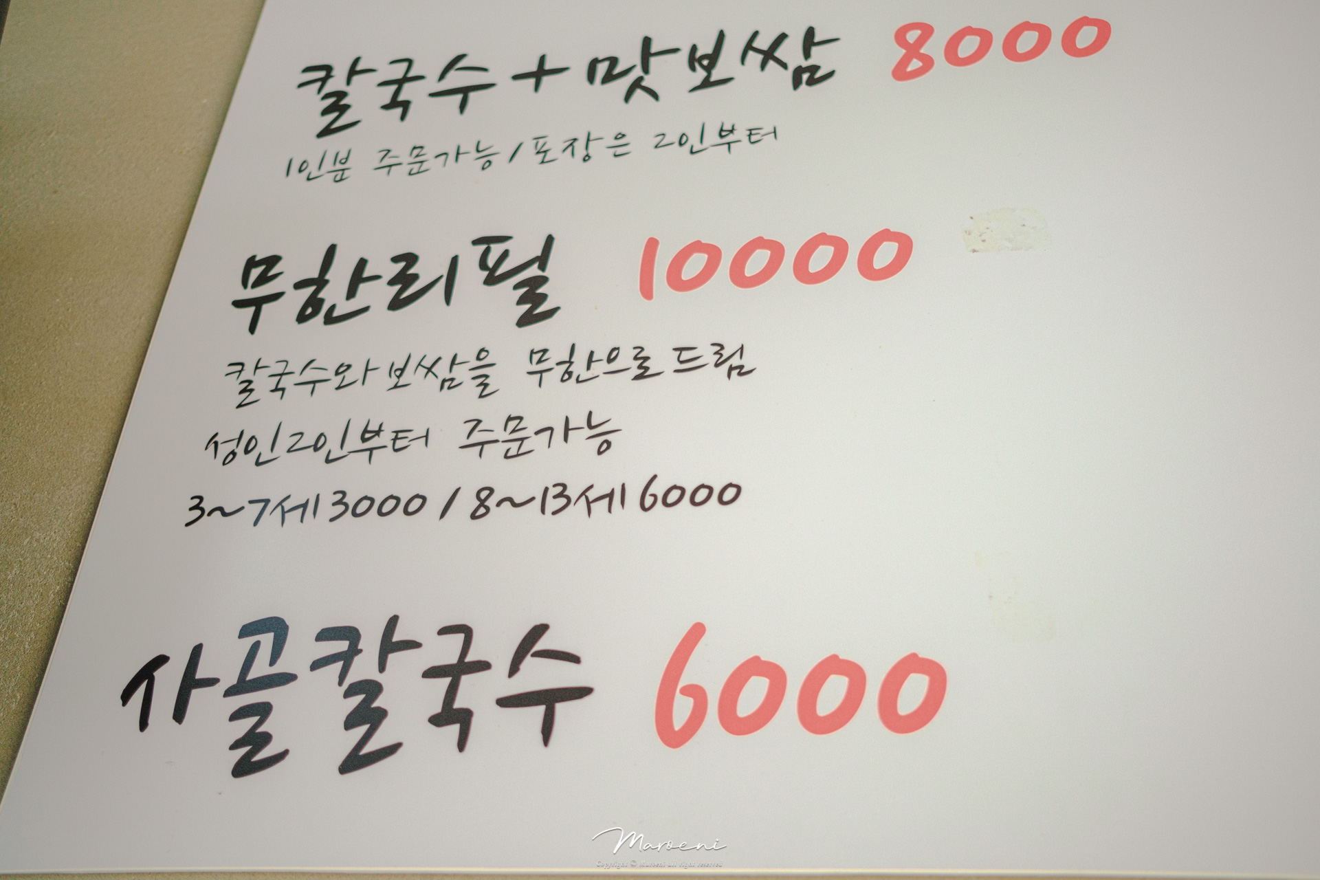 저희는 양이 많지 않기 때문에 빠르게 먹고 나갈 생각으로 칼국수+맛보쌈을 주문했는데 이것도 양이 엄청 많더라구요!? 평범한 양을 드시는 여성 2분이나 커플이 먹기에는 이것도 괜찮겠다 싶었어요. 보쌈의 양이 살짝 모자라긴 했지만 칼국수가 양이 많아서 밸런스가 딱 맞았어요. 사실 요즘 8,000원으로 이런 구성 찾기도 힘들거든요..