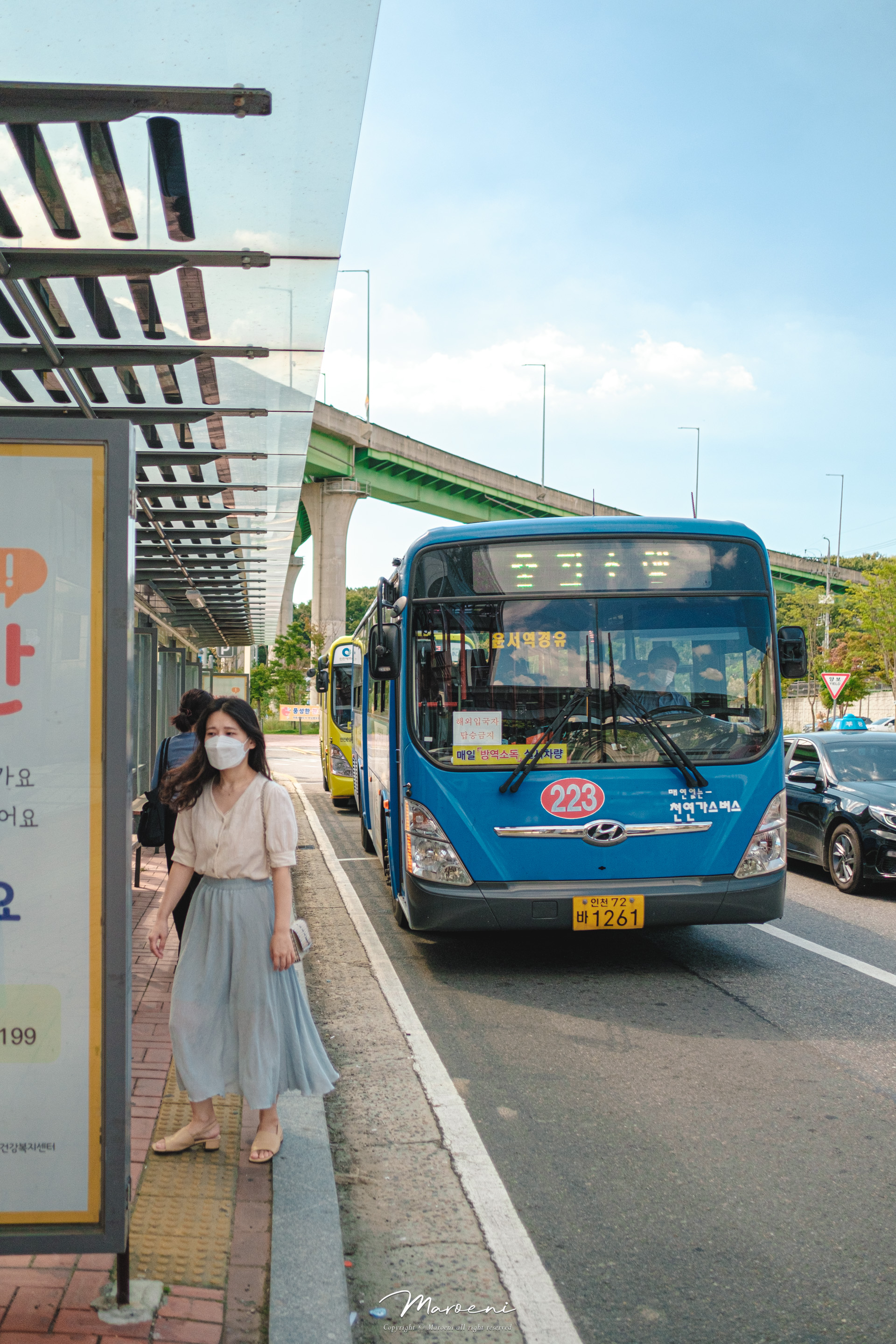 1번 출구로 나와서 출구 앞에 있는 223번 버스를 탔는데요. 버스는 출구 바로 앞에서 타는 것이 아니라 신호 2개를 건너서 반대편으로 나와야지 탈 수 있더라구요.