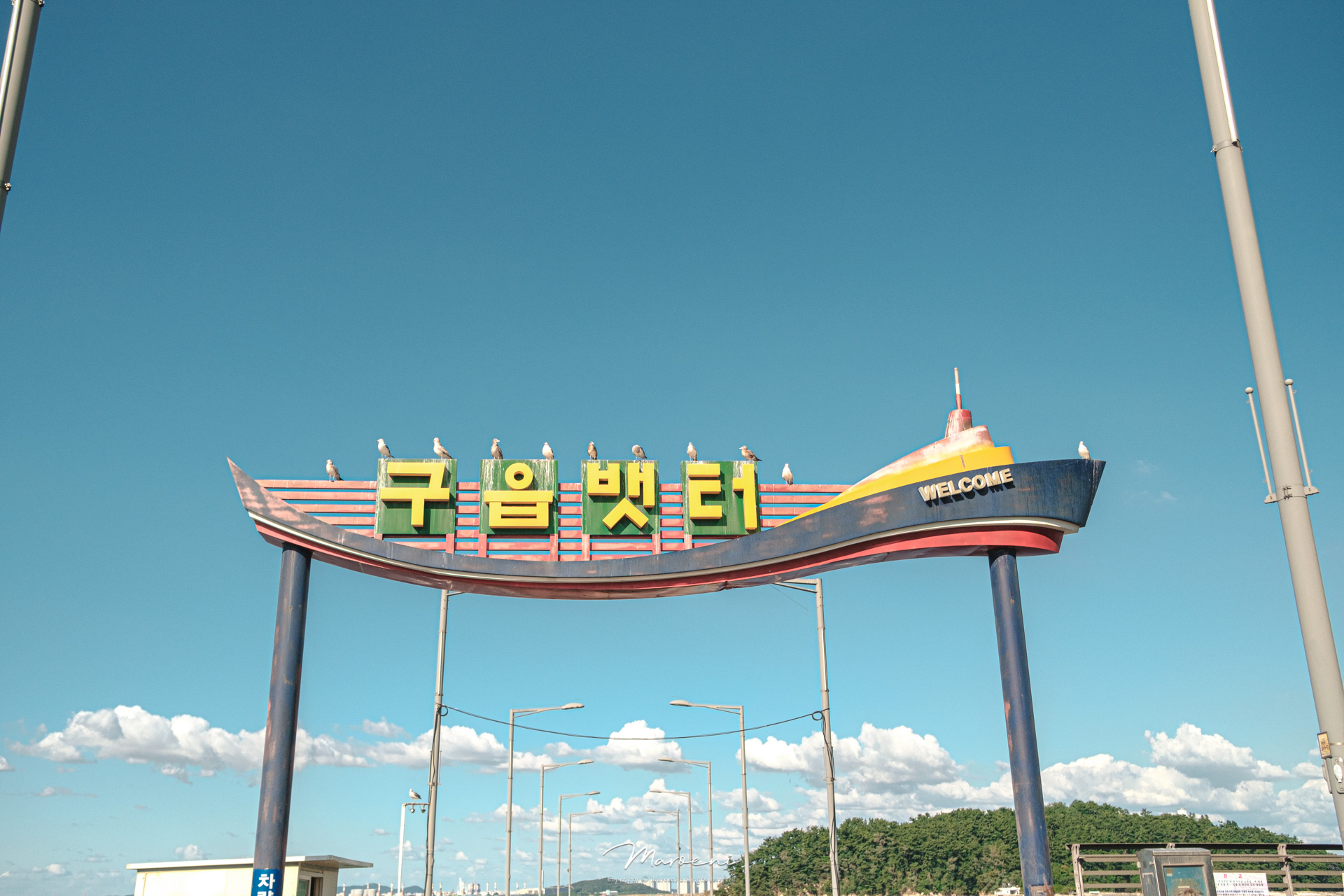 구읍뱃터 간판 위에 일정한 간격으로 앉아있는 갈매기들ㅋㅋ 혹시라도 이 갈매기들이 내려와서 놀아주는 이벤트가 발생하는건 아닐까 싶어서 옆에 있던 편의점에서 새우깡을 사봤지만..