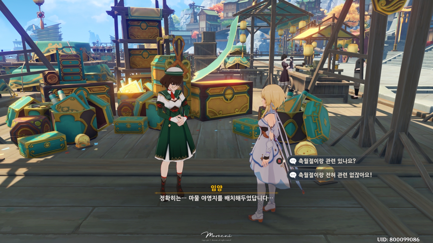 축월절 이벤트 기간에 리월에 있는 임양을 통해 축월 부적과 현월의 보물상자를 수집해야하는 퀘스트를 받을 수 있는데