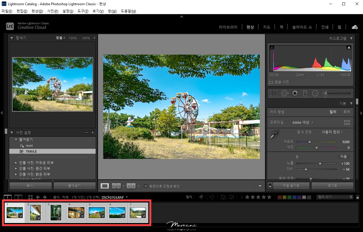 이 중에서 한 장의 사진을 프리셋으로 적용해주세요. 한 장은 무조건 프리셋이 적용된 사진이어야 하며 다른 사진들은 보정이 들어가지 않은 원본 상태여야 합니다.