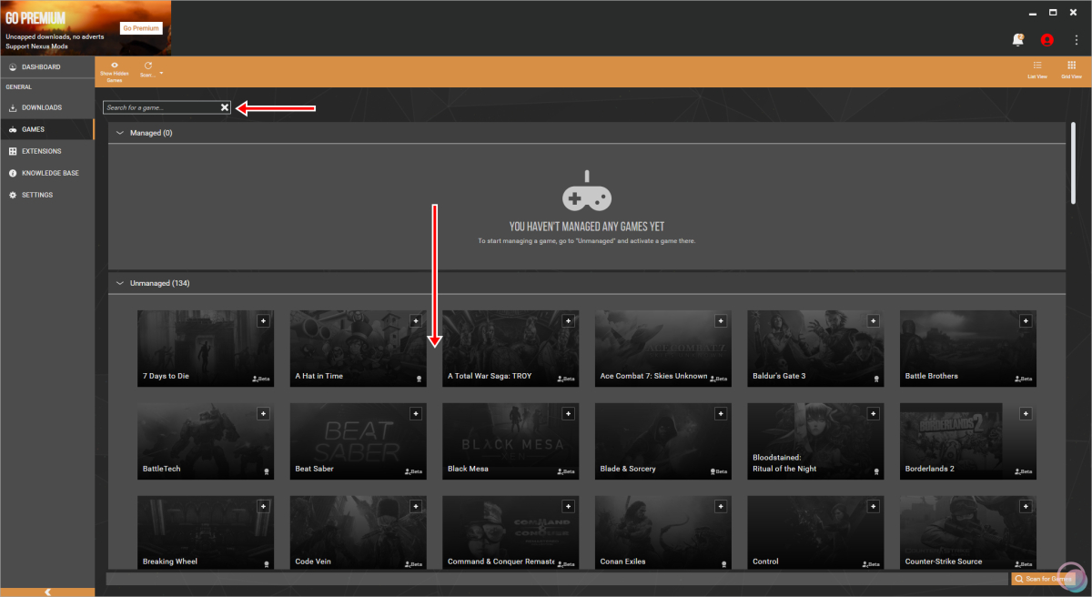 2) 그러면 현재 넥서스에 등록된 게임들이 목록에 보여지는데, 자신이 보유한 게임을 선택하거나 상단의 검색창을 통해 게임을 검색한 후 등록을 해주세요. 참고로 게임이 설치되어 있지 않다면 선택 자체가 불가능합니다.
